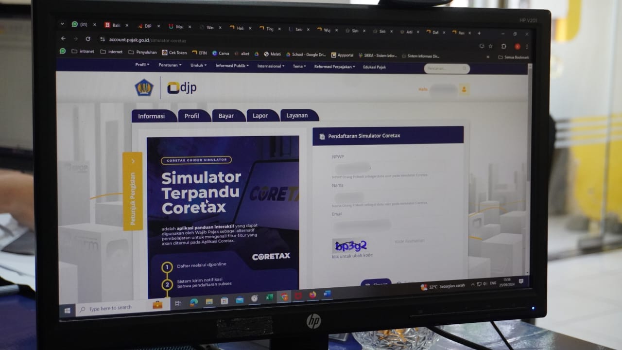 Lebih lanjut, Rahmat mengenalkan Simulator Terpadu Coretax yang kini telah tersedia pada laman www.pajak.go.id. Simulator Terpadu Coretax adalah aplikasi panduan interaktif yang dapat digunakan wajib pajak untuk mengenali fitur-fitur yang akan ditemui pada apliaksi Coretax. Untuk memanfaatkan simulator ini, wajib pajak akan diminta melakukan pendaftaran terlebih dahulu melalui akun djponline. Kemudian, sistem akan mengirim notifikasi bahwa pendaftaran berhasil dilakukan. Wajib pajak akan menerima tautan, username, dan password akun Coretax yang dikirim melalui email terdaftar maksimal 3 (tiga) hari kerja setelah pendaftaran sukses.