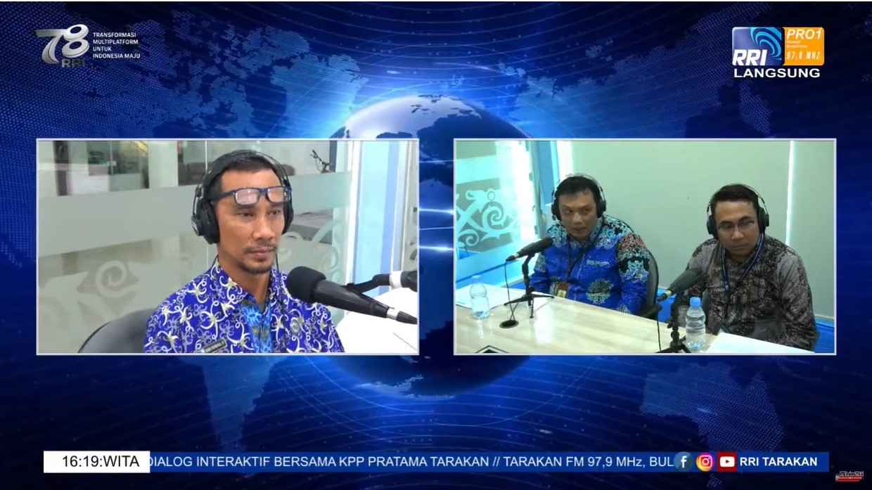 Kantor Pelayanan Pajak (KPP) Pratama Tarakan menjadi narasumber dalam siniar (podcast)yang disiarkan oleh Radio Republik Indonesia (RRI) Tarakan di Kota Tarakan. Siniar tersebut disirkan melalui saluran radio RRI Tarakan pada frekuensi 97,9 MHz dan juga kanal YouTube RRI Tarakan Official. Siniar tersebut berlangsung selama satu jam, mulai pukul 16.00 WITA sampai dengan 17.00 WITA (Jumat, 1/9).