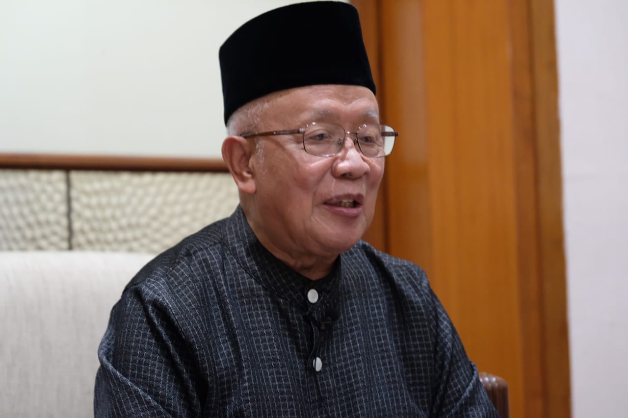 Ketua Majelis Ulama Indonesia (MUI) Kota Bandung Miftah Faridl menyampaikan SPT Tahunan PPh Orang Pribadi tahun pajak 2020 melalui e-Filing di Sekretariat Yayasan Unisba Bandung, Bandung (Rabu, 17/2).