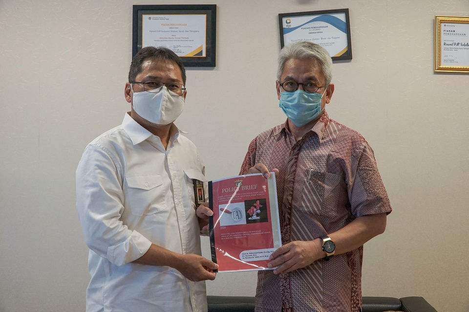 Dalam audiensi kali ini, Prof. Dr. Mohamad Thahir Haning, M.Si yang juga merupakan Ketua Tax Center Universitas Hasanuddin Makassar menyampaikan hasil penelitian mengenai strategi meningkatkan kepatuhan Wajib Pajak di Provinsi Sulawesi Selatan. Kedua pihak pun sepakat untuk mengkaji lebih lanjut hasil penelitian tersebut untuk nantinya akan disosialisasikan pada unit kerja DJP di wilayah Provinsi Sulawesi Selatan guna penambahan alternatif referensi untuk menetapkan strategi peningkatan kepatuhan wajib pajak di wilayah kerja masing-masing.