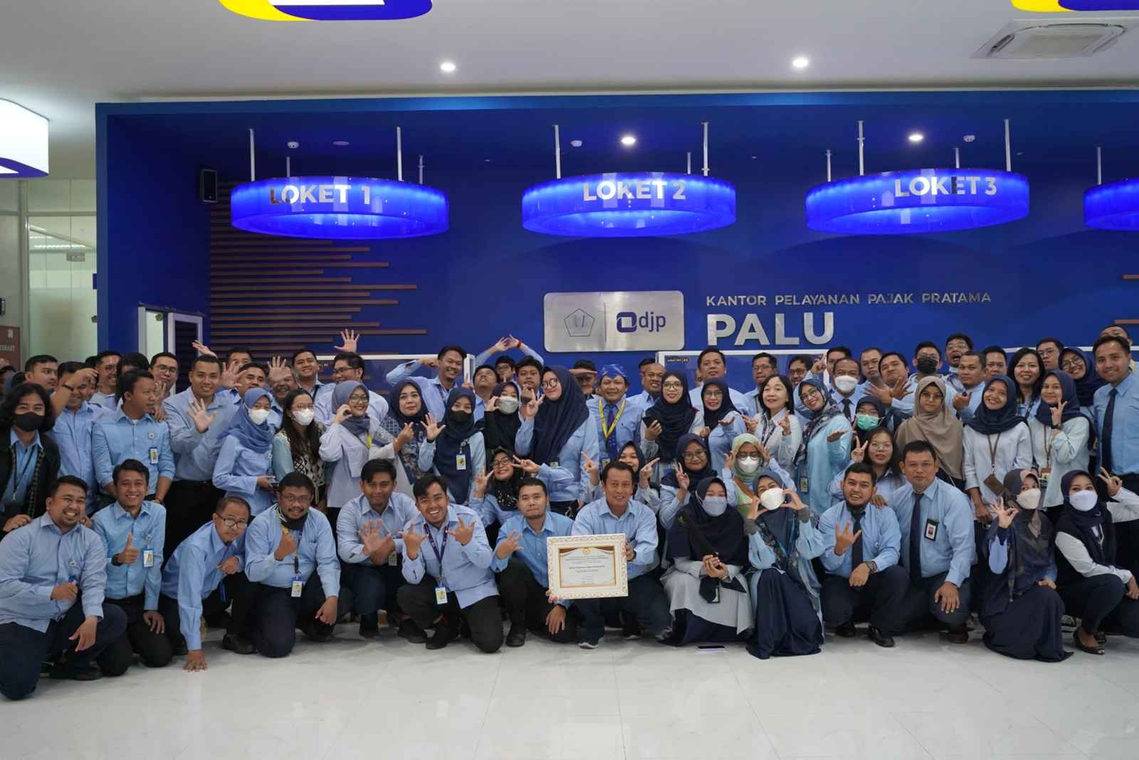 Kantor Pelayanan Pajak (KPP) Pratama Palu mengadakan kegiatan apel dalam rangka mengucap syukur atas keberhasilan meraih predikat Zona Integritas Wilayah Bebas Korupsi (ZI-WBK) dan penghargaan unit kerja yang melakukan pelayanan prima berdasarkan Evaluasi Unit Pelayanan Publik (EUPP) yang dilakukan Kementerian Pendayagunaan Aparatur Negara dan Reformasi Birokrasi pada tahun 2022 bertempat di Tempat Pelayanan Terpadu (TPT) KPP Pratama Palu, Kota Palu (Rabu, 11/1).