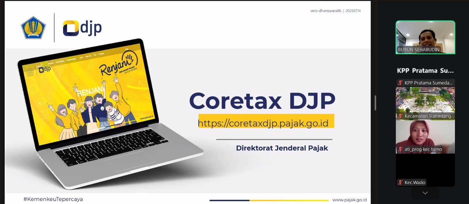 Bekerja sama Inspektorat Daerah Kabupaten Sumedang, Kantor Pelayanan Pajak (KPP) Pratama Sumedang mengadakan kegiatan daring bertajuk “Sosialisasi Kebijakan LHKAN (Registrasi Coretax)”. Kegiatan yang diselenggarakan secara daring itu diikuti oleh 68 Pejabat Kepegawaian pada Perangkat Daerah di lingkungan Pemerintah Daerah Kabupaten Sumedang, Kabupaten Sumedang (Rabu, 22/10).