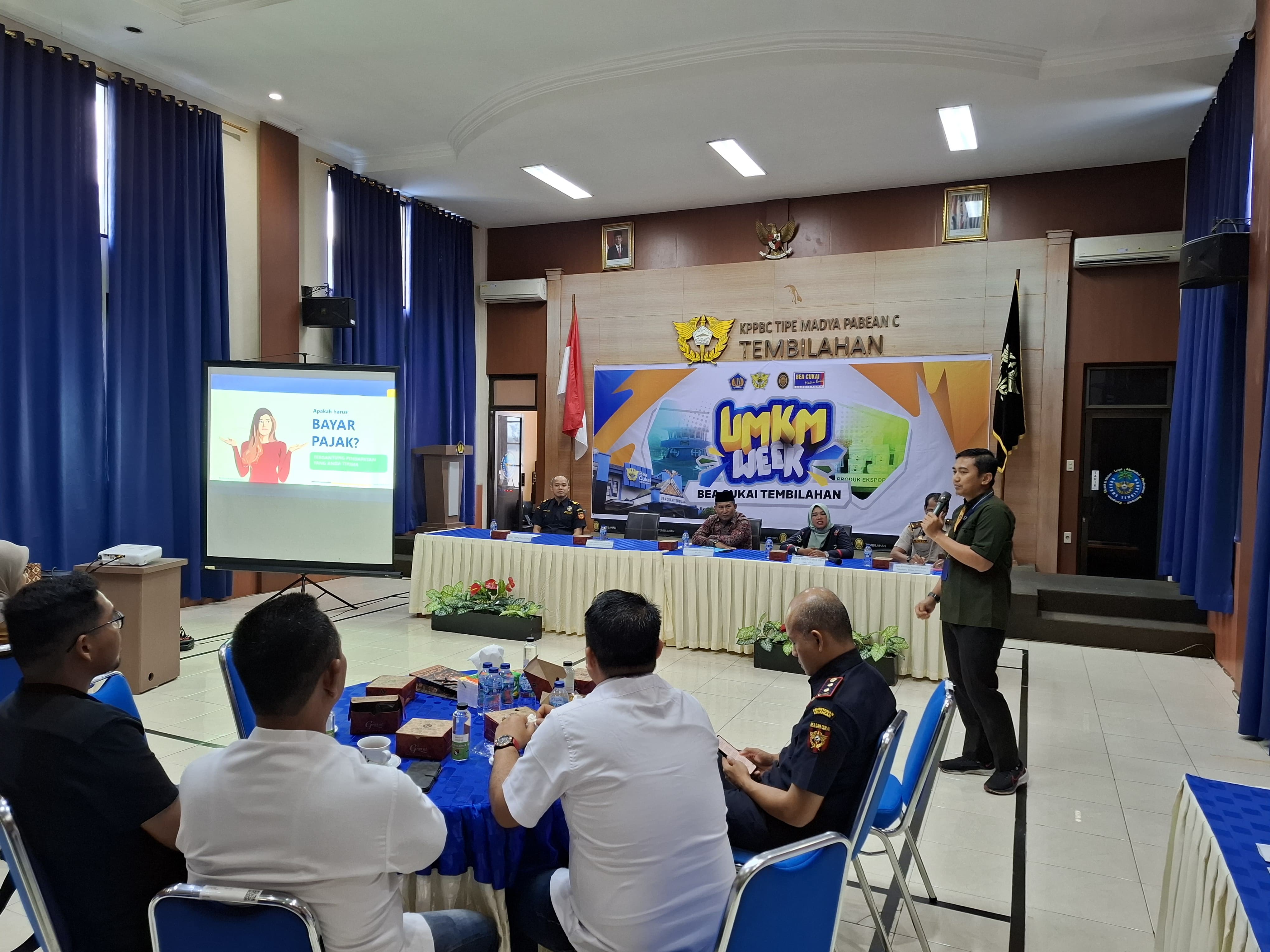 Kantor Pelayanan, Penyuluhan, dan Konsultasi Perpajakan (KP2KP) Tembilahan menghadiri kegiatan Business Development Service (BDS) yang diselenggarakan oleh Kantor Pelayanan dan Pengawasan Bea Cukai Tipe Madya C Tembilahan di Aula Sri Gemilang Kantor Pelayanan dan Pengawasan Bea Cukai Tipe Madya C Tembilahan, Kabupaten Indragiri Hilir (Kamis, 18/7).