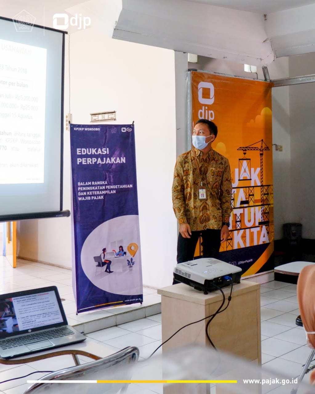 Dayung Ginanjar Rohyat Tim Penyuluh KP2KP Wonosobo memandu kegiatan dengan tetap menerapkan protokol kesehatan yang berlaku. Materi yang diberikan kepada peserta adalah kewajiban perpajakan bagi usahawan dan perpanjangan insentif pajak.