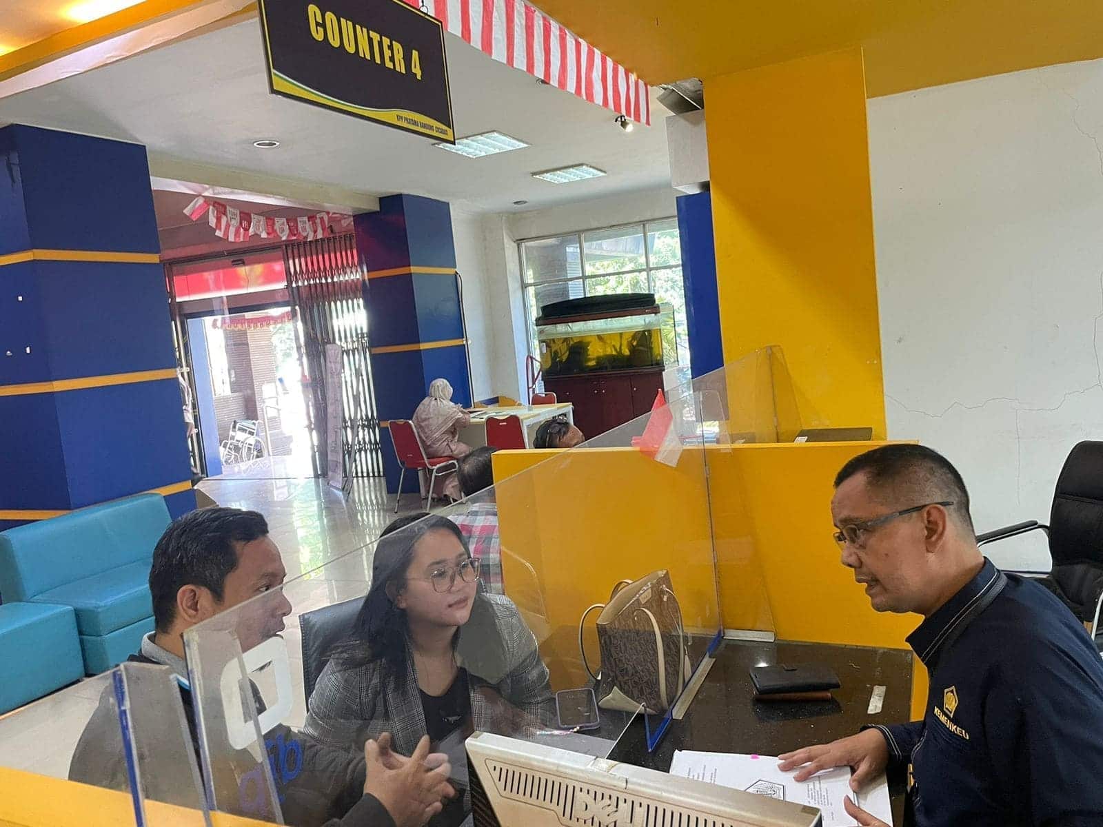 Kepala Seksi Pelayanan Kantor Pelayanan Pajak Pratama Bandung Cicadas Sahat Jansen memberikan edukasi kepada wajib pajak yang berkonsultasi mengenai alamat terdaftar Pengusaha Kena Pajak (PKP) di Tempat Pelayanan Terpadu (TPT) KPP Pratama bandung Cicadas, Jalan Soekarno Hatta nomor 781 Kota Bandung (Rabu, 13/9).