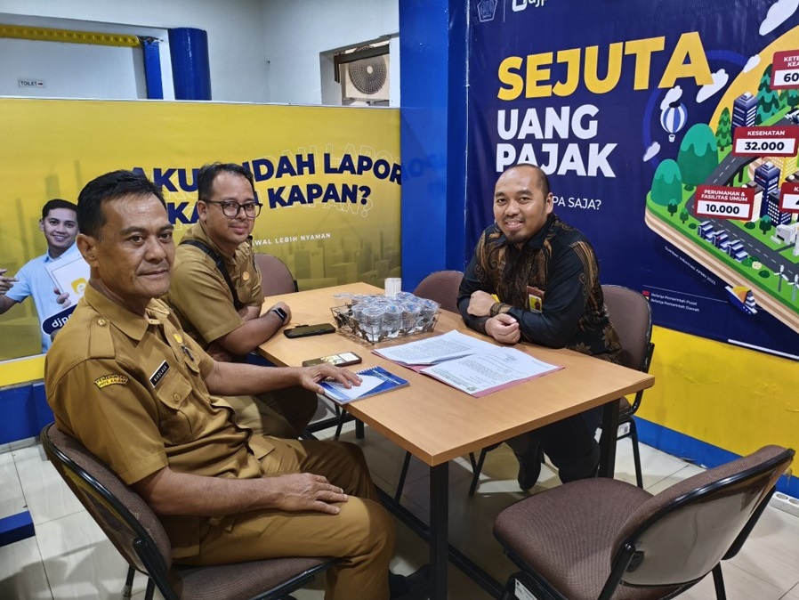 Kepala Kantor Pelayanan, Penyuluhan, dan Konsultasi Perpajakan (KP2KP) Ngabang, Prima Wihantoro, menerima kunjungan Plt. Sekretaris Dewan Perwakilan Rakyat Daerah (DPRD) Kabupaten Landak, Nikolaus, dan Fungsional Analis Kebijakan Ahli Muda, Asep Sumirna, di Ruang Konsultasi KP2KP Ngabang, Kabupaten Landak (Selasa, 24/6).