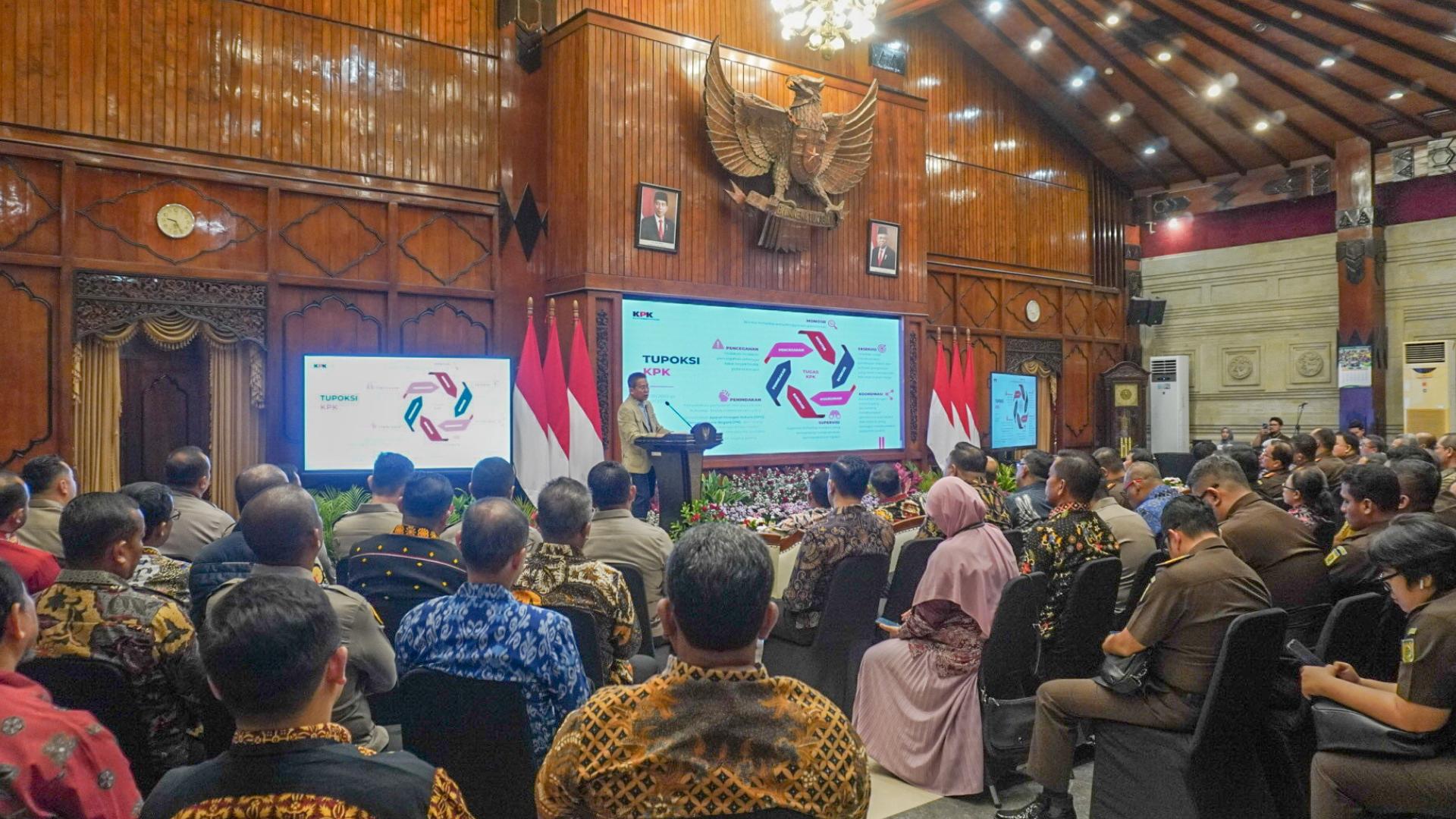 Komisi Pemberantasan Korupsi (KPK) menggelar Rapat Koordinasi Pemberantasan Korupsi dan Perbaikan Tata Kelola Pelayanan Publik Tahun 2024 yang diselenggarakan di Kantor Gubernur Jawa Timur, Kota Surabaya, pada (Jumat, 14/6).