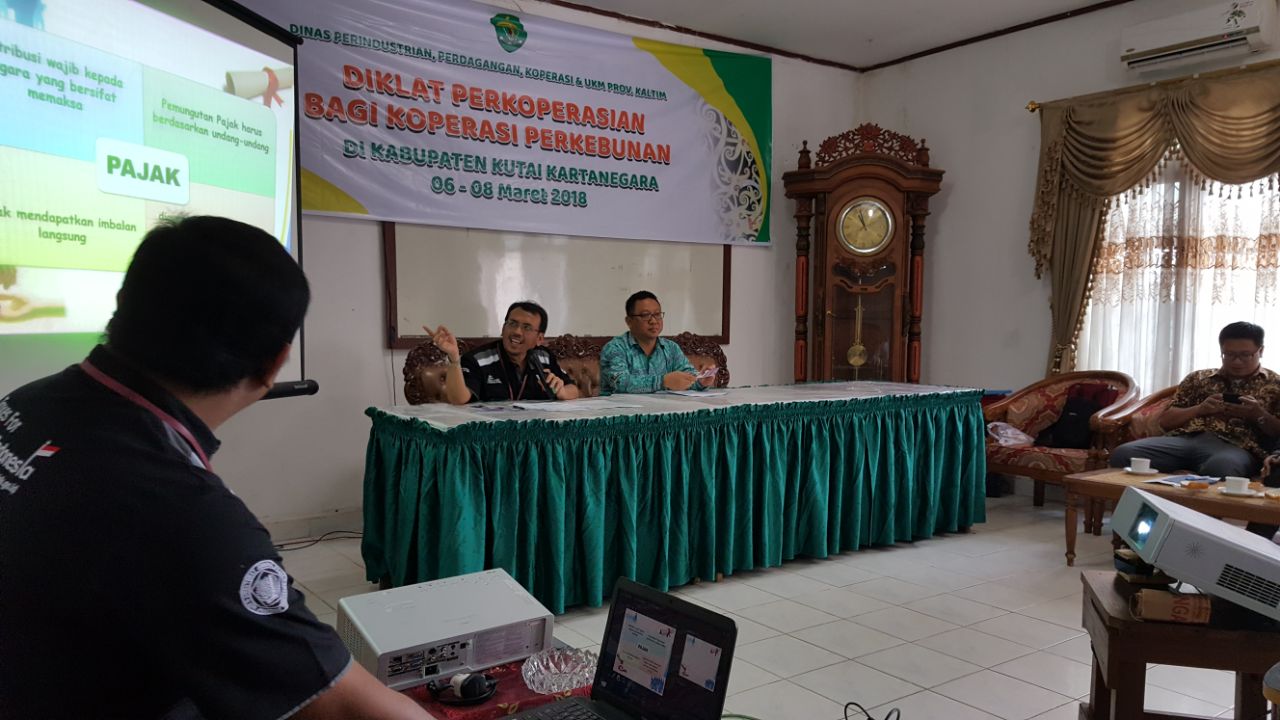 Memenuhi undangan undangan dari Dinas Perindustrian, Perdagangan, Koperasi dan UKM Provinsi Kalimantan Timur, KPP Pratama Tenggarong memberikan edukasi perpajakan bagi Koperasi Perkebunan Kabupaten Kutai Kartanegara pada acara Diklat Perkoperasian di Aula Hotel Amanah, Jl. Danau Uwis No.17, Loa Ipuh, Tenggarong, Kamis (8/3) lalu.
