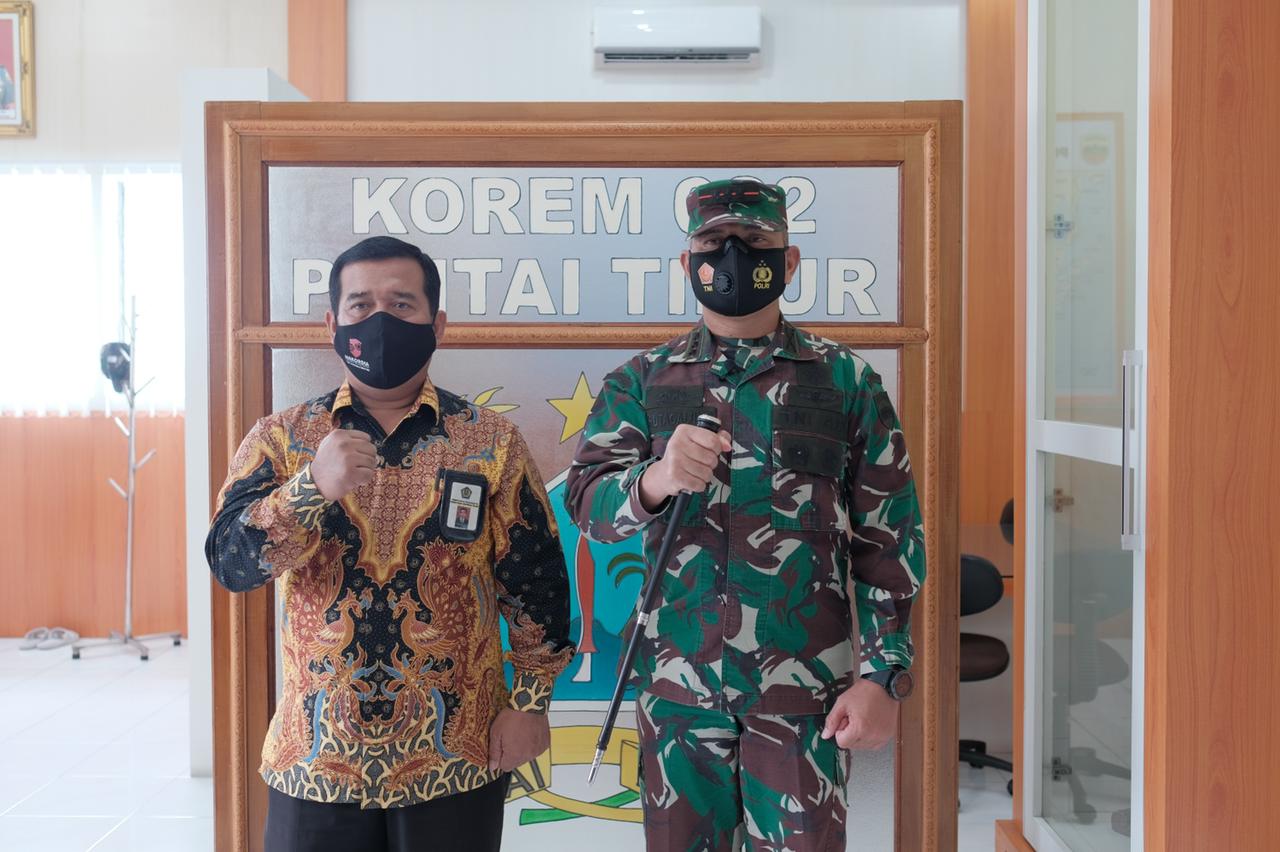 Komandan Komando Resort Militer (Korem) 022/Pantai Timur Kolonel Inf. Parlindungan Hutagalung menerima kunjungan Kantor Pelayanan Pajak (KPP) Pratama Tebing Tinggi di ruang kerja Komandan Korem 022/Pantai Timur di Kota Pematangsiantar (Kamis, 22/7).