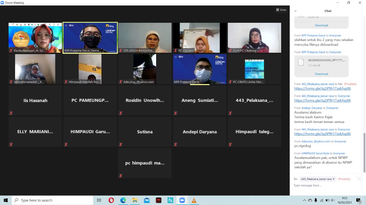 Kantor Pelayanan Pajak (KPP) Pratama Garut menggelar sosialisasi tata cara pelaporan Surat Pemberitahuan (SPT) Tahunan 1771 kepada tenaga pendidik khususnya Pendidikan Anak Usia Dini (PAUD) melalui zoom meeting di Garut (Selasa, 16/2).