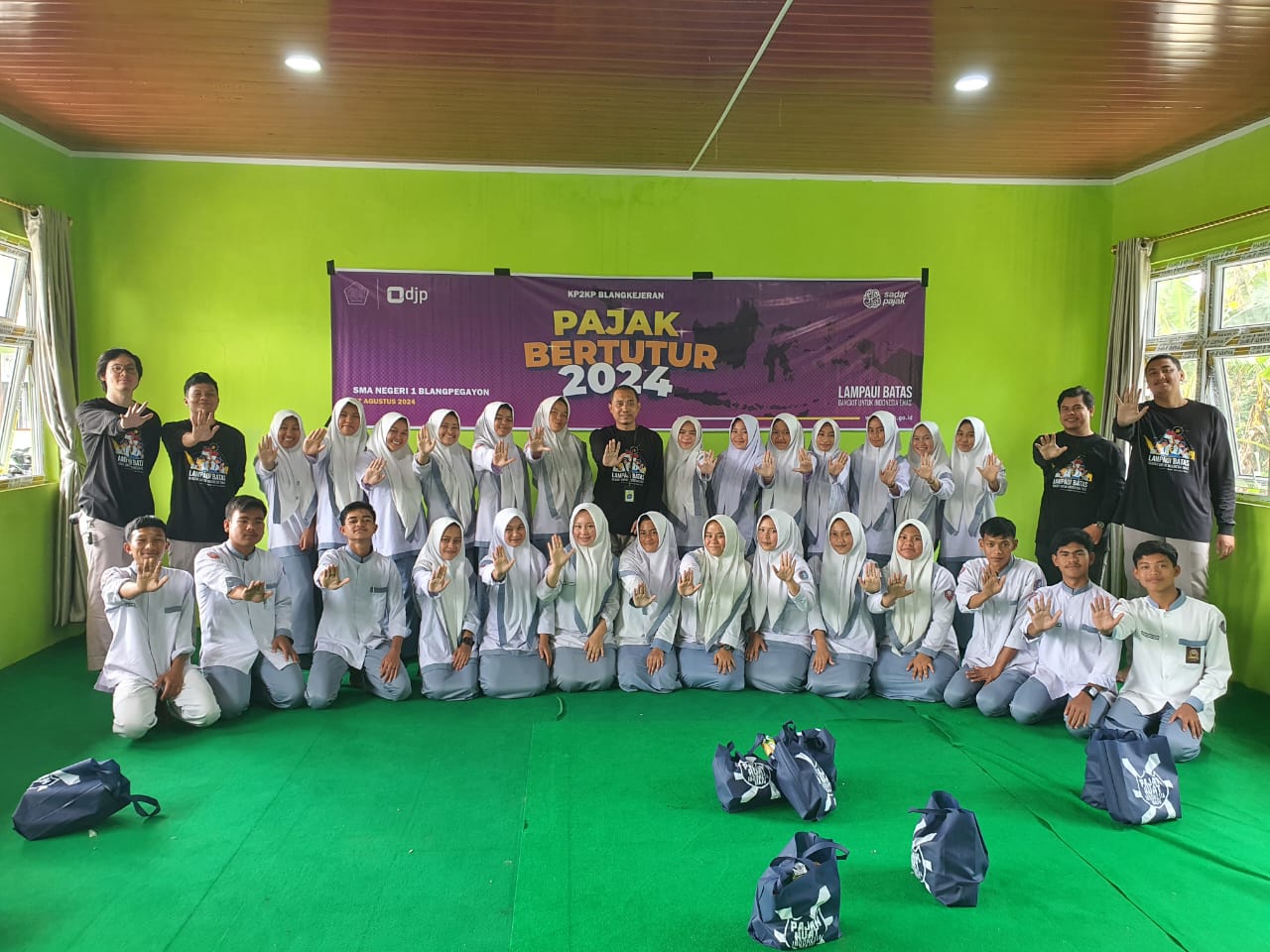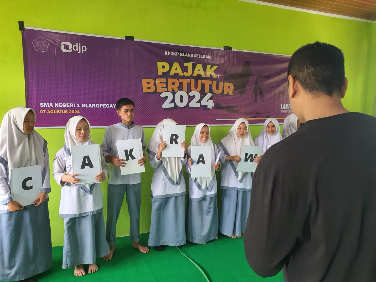 Kantor Pelayanan, Penyuluhan, dan Konsultasi Perpajakan (KP2KP) Blangkejeren menyelenggarakan kegiatan Pajak Bertutur 2024 di Sekolah Menengah Atas Negeri (SMAN) 1 Blangpegayon, Kabupaten Gayo Lues, Provinsi Aceh (Rabu, 7/8). Kegiatan yang diikuti oleh 30 siswa/i gabungan murid kelas 12 SMAN 1 Blangpegayon ini bertujuan untuk meningkatkan kesadaran pajak sejak dini kepada siswa sekolah.