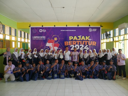 Kantor Pelayanan, Penyuluhan, dan Konsultasi Perpajakan (KP2KP) Bontosunggu menyelenggarakan acara Pajak Bertutur di Sekolah Menengah Pertama Negeri 1 Bontosunggu, Jeneponto. Kegiatan ini dihadiri oleh siswa dan guru dengan tujuan utama menumbuhkan kesadaran pajak sejak dini (Rabu, 7/8).