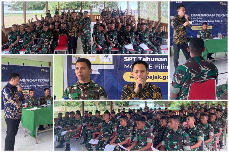 Kantor Pelayanan, Penyuluhan, dan Konsultasi Perpajakan (KP2KP) Bula menyelenggarakan kegiatan sosialisasi pemadanan NIK-NPWP dan bimbingan pengisian SPT Tahunan bagi seluruh prajurit di Kompi Senapan E731/Kabaresi, Kecamatan Bula, Kabupaten Seram Bagian Timur, Maluku (Selasa, 31/1).