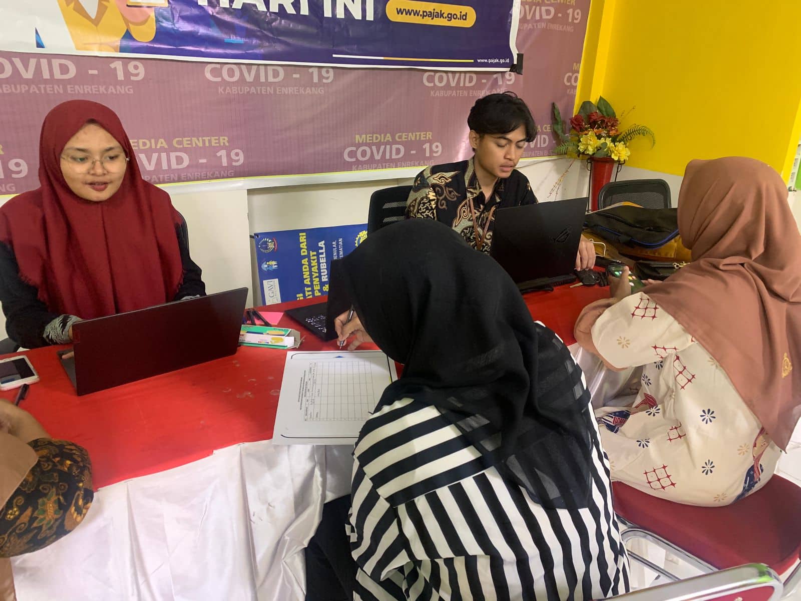 Kantor Pelayanan, Penyuluhan, dan Konsultasi Perpajakan (KP2KP) Enrekang mengadakan kunjungan kerja ke Dinas Kesehatan Kabupaten Enrekang di Jalan Sultan Hasanuddin No.56, Kabupaten Enrekang (Jumat, 31/3). Kunjungan ini dilakukan untuk menyelenggarakan pos pajak pelaporan Surat Pemberitahuan (SPT) Tahunan terhadap pegawai di bawah naungan Dinas Kesehatan.