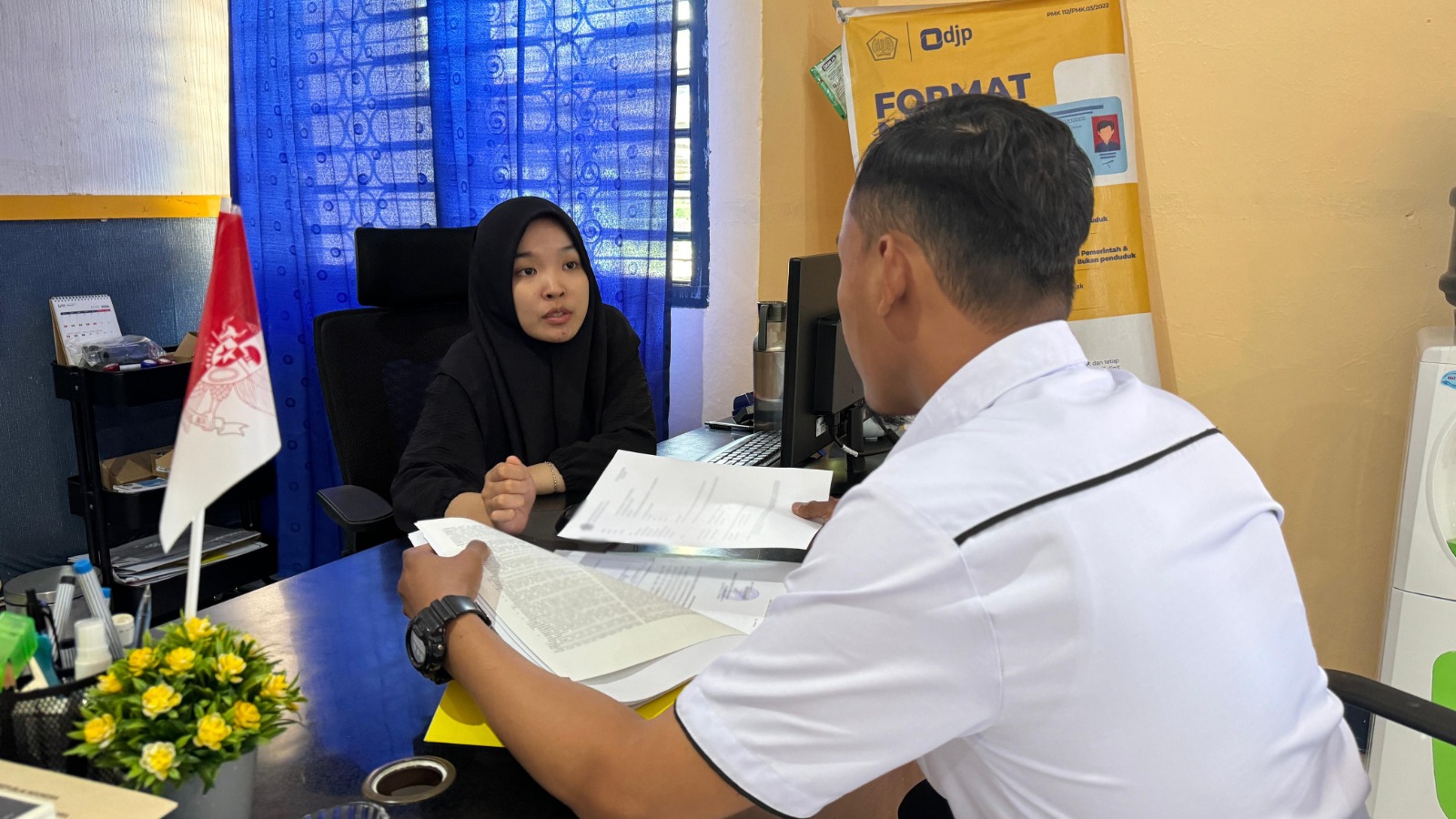 Kantor Pelayanan, Penyuluhan, dan Konsultasi Perpajakan (KP2KP) Enrekang menerima kedatangan wajib pajak yang hendak melakukan konsultasi terkait kewajiban pajak atas tanah yang dibeli melalui lelang (Selasa, 3/9). DM selaku wajib pajak menyampaikan bahwa dirinya telah memenangkan lelang atas tanah dari salah satu bank dan ingin melakukan proses balik nama pada sertifikat kepemilikan tanah tersebut.