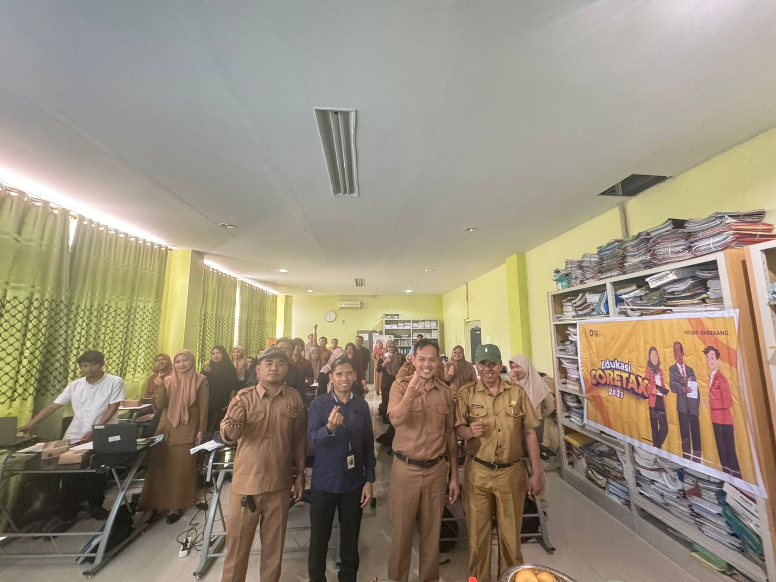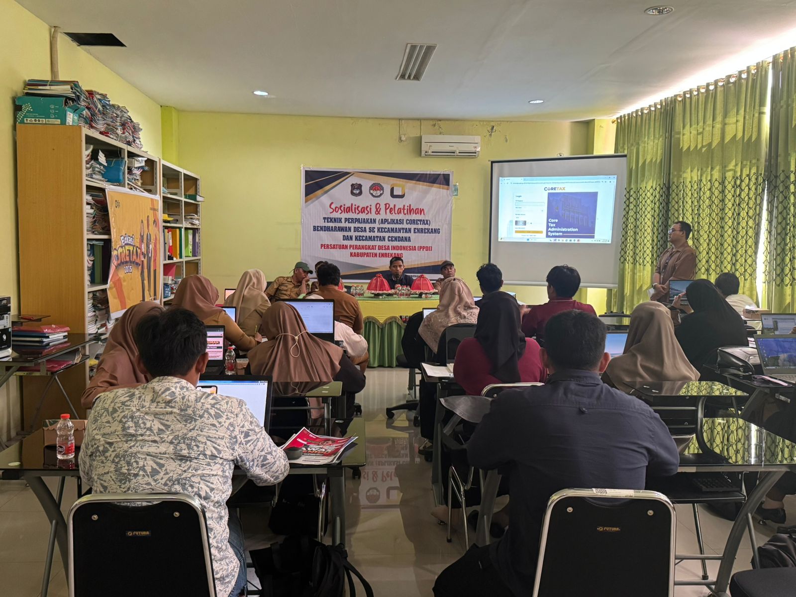 Kantor Pelayanan, Penyuluhan, dan Konsultasi Perpajakan (KP2KP) Enrekang menyelenggarakan sosialisasi aplikasi Coretax Direktorat Jenderal Pajak (DJP) kepada para bendahara desa dari Kecamatan Enrekang dan Kecamatan Cendana, Kabupaten Enrekang (Senin, 29/7). Kegiatan berlangsung di Aula Dinas Pemberdayaan Masyarakat dan Desa (DPMD) Lantai 1, Kantor Gabungan Dinas Kabupaten Enrekang, dan diikuti oleh lebih dari 20 perwakilan desa.