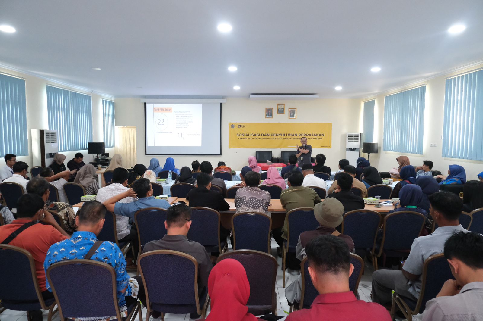 Kantor Pelayanan Pajak Pratama Natar bekerja sama dengan Kantor Pelayanan, Penyuluhan dan Konsultasi Pajak (KP2KP) Kalianda sukses menggelar sosialisasi edukasi perpajakan bagi wajib pajak badan baru di Aula KP2KP Kalianda, Kabupaten Lampung Selatan (Selasa,17/9). Kegiatan yang dibuka langsung oleh Kepala KP2KP Kalianda,Didik Suhadi ini dihadiri oleh oleh lima puluh Wakil atau Kuasa Wajib Pajak Badan yang mengikuti pemaparan materi.