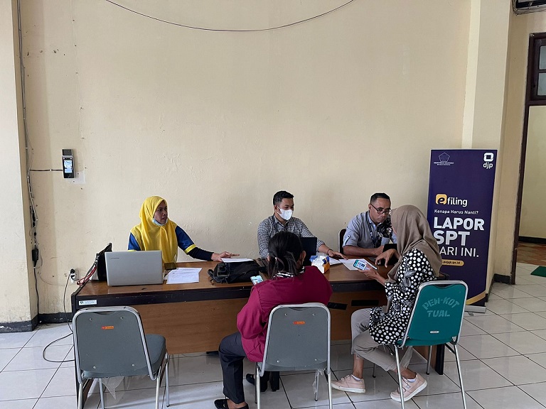 Kantor Pelayanan, Penyuluhan dan Konsultasi Perpajakan (KP2KP) Langgur mengadakan Pojok Pajak SPT Tahunan PPh Orang Pribadi di area Kantor Wali Kota Tual, Maluku (Kamis, 24/3). Kegiatan ini dimaksudkan untuk memberikan kemudahan kepada para Aparatur Sipil Negara (ASN) yang berkantor di area Gedung Kantor Walikota Tual untuk menyampaikan SPT Tahunan.