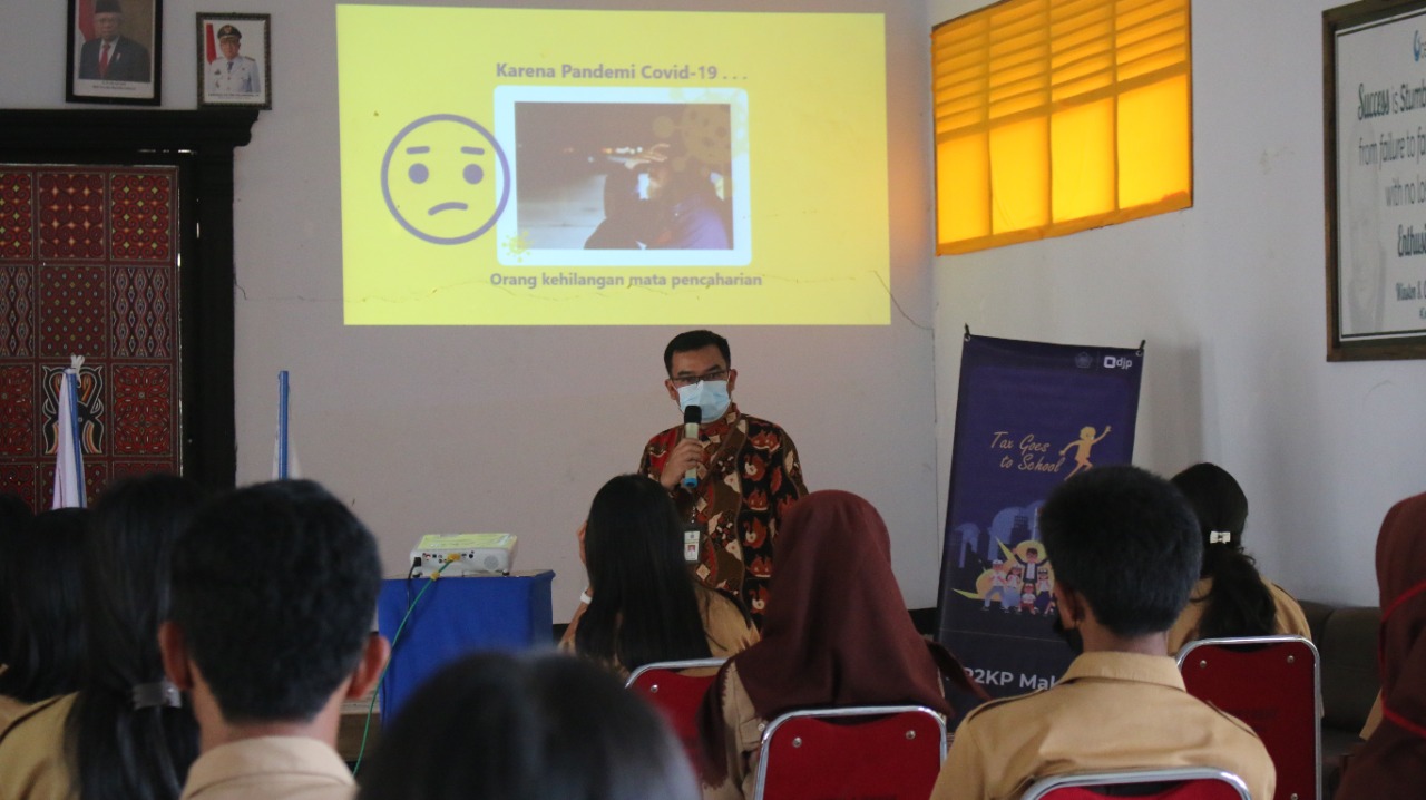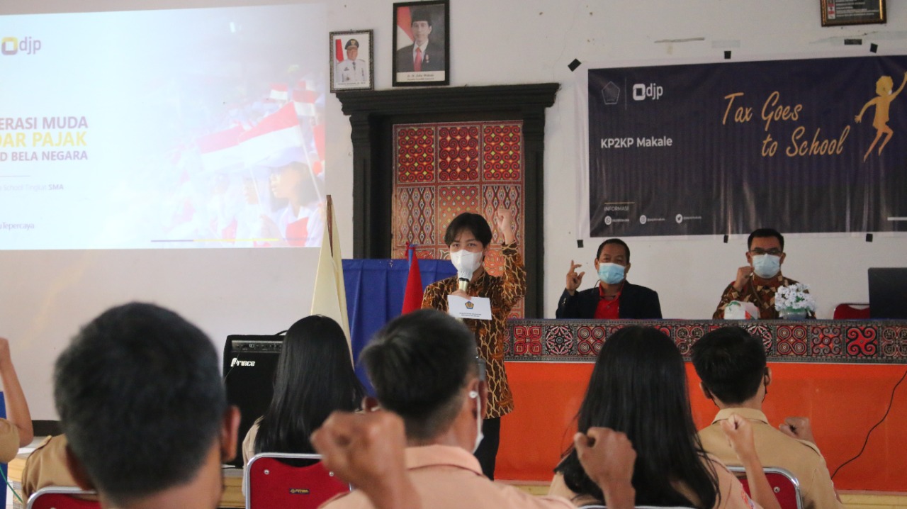 Kantor Pelayanan, Penyuluhan, dan Konsultasi Perpajakan (KP2KP) Makale menyelenggarakan kegiatan sosialisasi perpajakan pada generasi muda yang dikemas dalam acara Tax Goes to School (TGTS) dengan menggandeng pelajar SMK Negeri 2 Toraja Utara (Jumat, 10/9). Acara ini diselenggarakan secara tatap muka di ruang aula SMK Negeri 2 Toraja Utara, Kabupaten Toraja Utara.