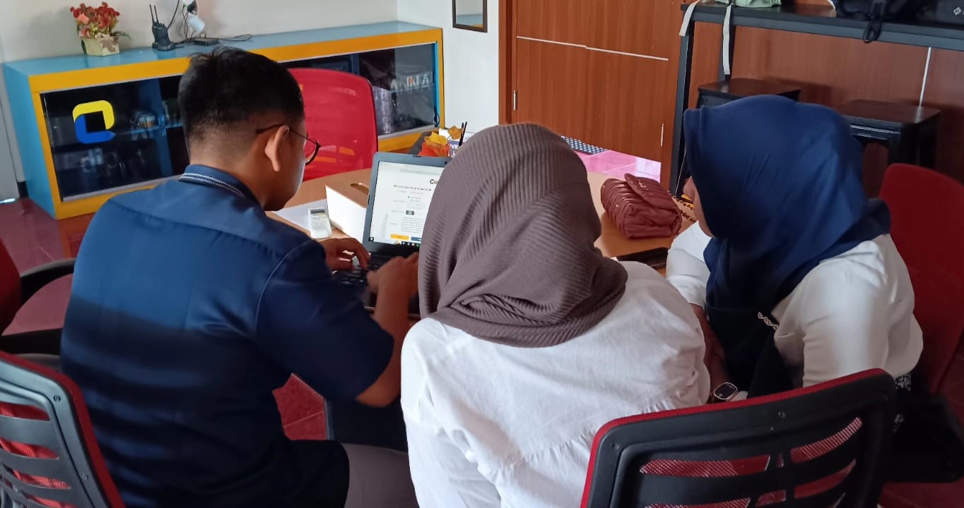 Pelaksana KP2KP Manna mendampingi bendahara di Loket Layanan Mandiri KP2KP Manna yang beralamat di Jalan Pangeran Duayu Nomor 31, Ketapang Besar, Kecamatan Pasar Manna, Kabupaten Bengkulu Selatan, Bengkulu.