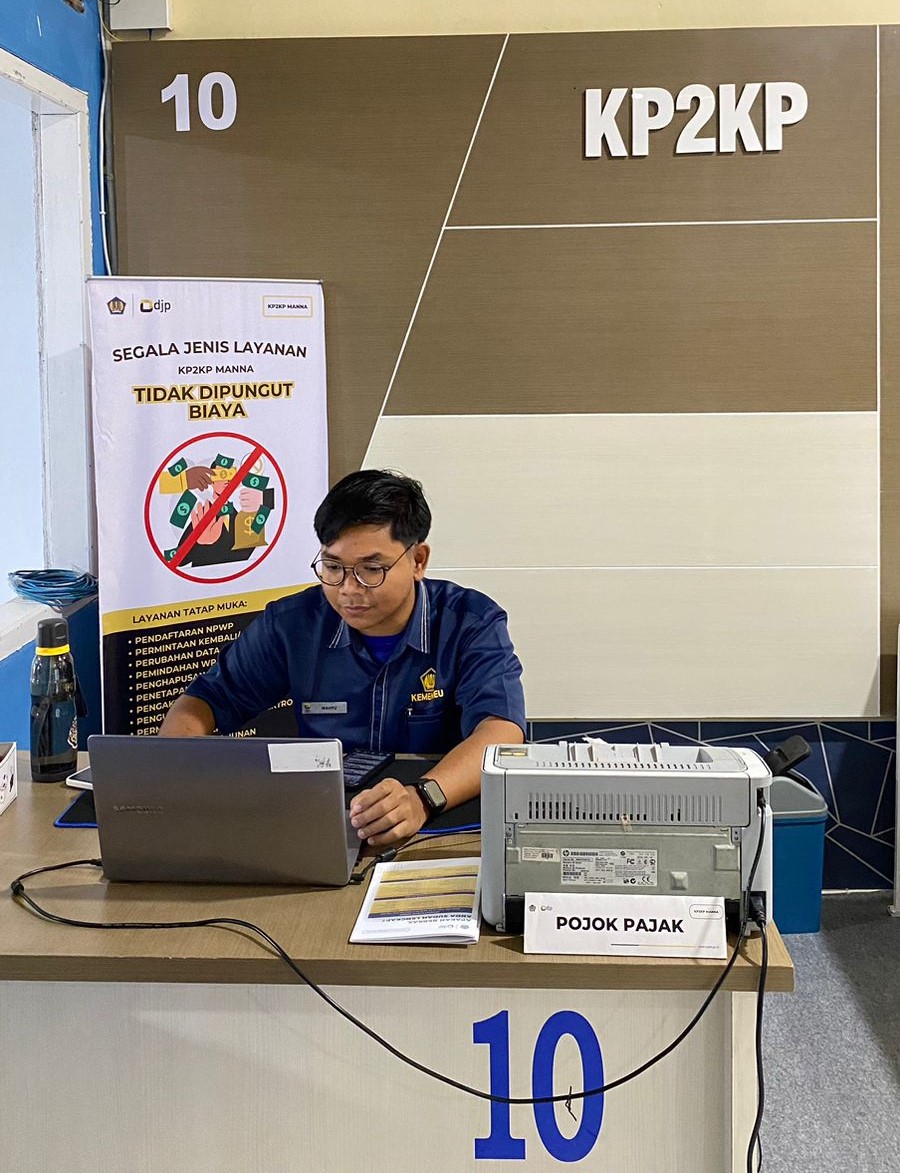 Kantor Pelayanan, Penyuluhan, dan Konsultasi (KP2KP) Manna telah membuka stan layanan perpajakan luar kantor yang berlokasi di Mal Pelayanan Publik (MPP) Bengkulu Selatan yang berlokasi di Gedung Dinas Penanaman Modal dan Pelayanan Terpadu Satu Pintu (DPMPTSP) Kabupaten Bengkulu Selatan Kelurahan Pagar Dewa, Kecamatan Kota Manna, Kabupaten Bengkulu Selatan, Bengkulu pada (Rabu, 27/11). Kegiatan ini merupakan salah satu bentuk kerja sama berbasis pelayanan publik antara KP2KP Manna dan Pemerintah Daerah (Pemda) Kabupaten Bengkulu Selatan.