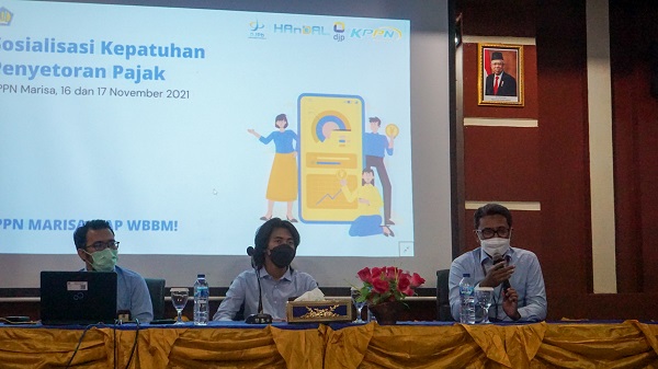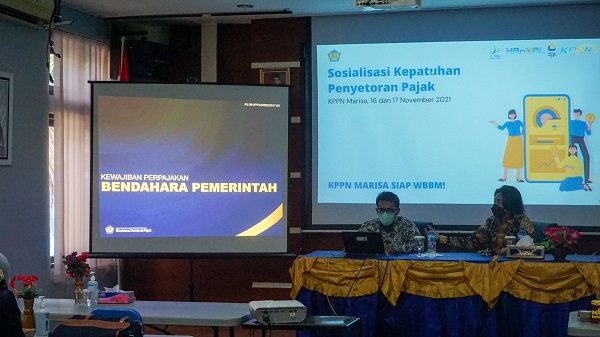 Kantor Pelayanan Penyuluhan dan Konsultasi Perpajakan (KP2KP) Marisa mengadakan kegiatan sosialisasi hak dan kewajiban perpajakan bendahara satuan kerja (satker) Kabupaten Pohuwato bertempat di Aula Kantor Pelayanan Perbendaharaan Negara (KPPN) Marisa, Kabupaten Pohuwato (Rabu, 17/11).
