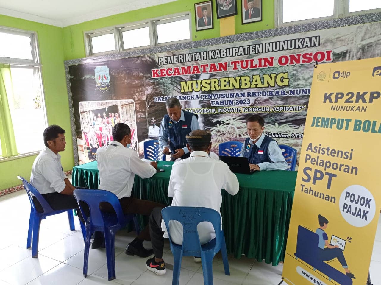 Sudah memasuki akhir masa pelaporan Surat Pemberitahuan (SPT) Tahunan Orang Pribadi, Kantor Pelayanan, Penyuluhan, dan Konsultasi Perpajakan (KP2KP) Nunukan melakukan road show pelayanan asistensi pelaporan SPT di Kecamatan Tulin Onsoi, Kab. Nunukan (Rabu, 2/3).