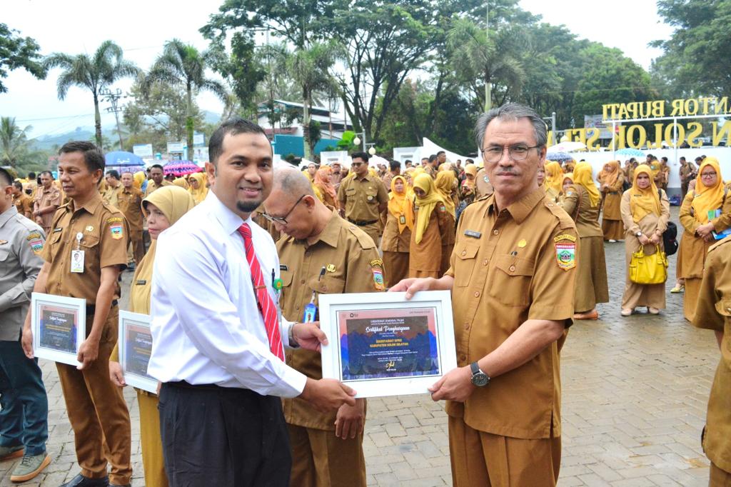 Kantor Pelayanan, Penyuluhan, dan Konsultasi Perpajakan (KP2KP) Padang Aro secara simbolis menyerahkan sejumlah penghargaan kepada Organisasi Perangkat Daerah (OPD) Terbaik se-Kabupaten Solok Selatan Tahun Anggaran 2022 dari Kantor Pelayanan Pajak (KPP) Pratama Solok selepas pelaksanaan apel pagi di Kantor Bupati Solok Selatan (Senin, 06/03). Penghargaan diserahkan oleh Reginaldi selaku Kepala KP2KP Padang Aro.
