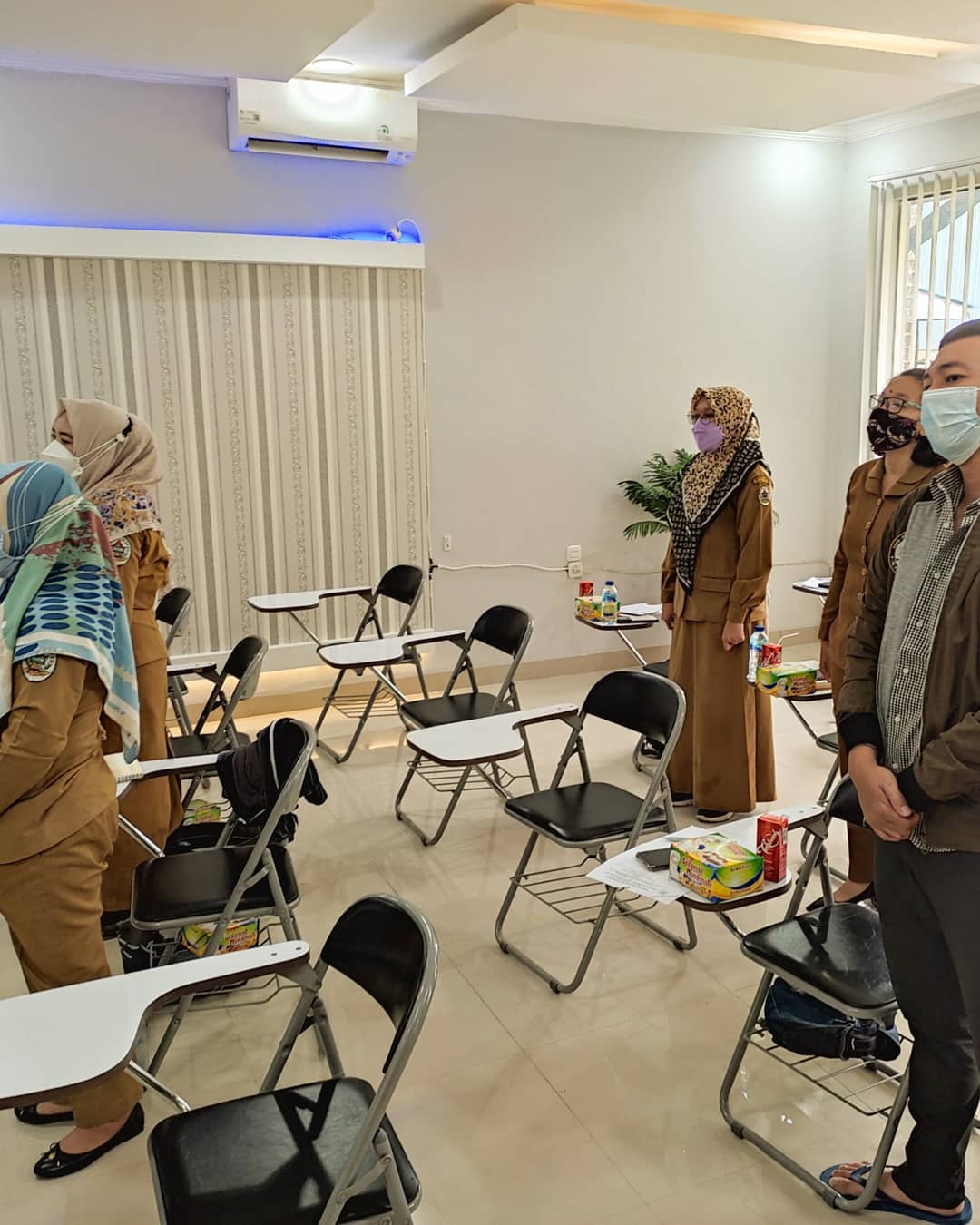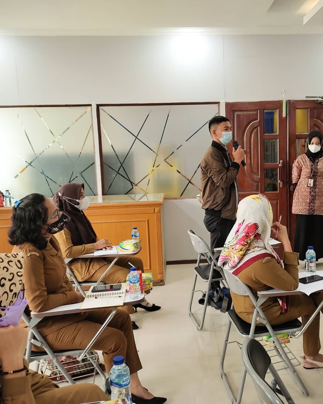 Kegiatan dilaksanakan dengan tetap memperhatikan protokol kesehatan yang berlaku yaitu menggunakan masker, mengukur suhu tubuh peserta, dan menggunakan handsanitizer sebelum memasuki ruangan aula, serta menjaga jarak.