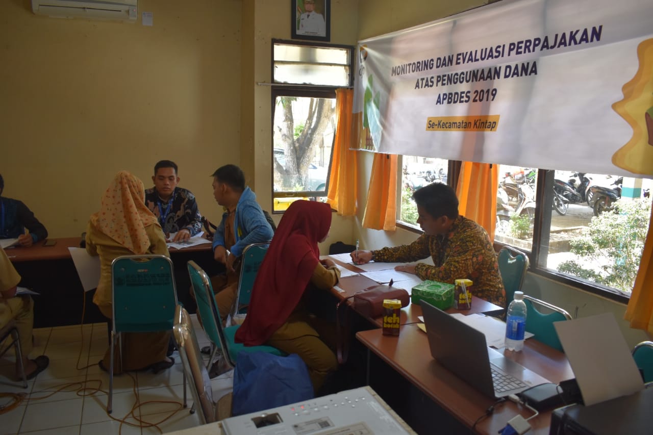 KP2KP Pelaihari bekerjasama dengan Kantor Kecamatan Kintap menggelar kegiatan Monitoring dan Evaluasi (Monev) Perpajakan atas Pengelolaan APBDesa Tahun Anggaran 2019 di Aula Kantor Kecamatan Kintap, Kabupaten Tanah Laut, Kalimantan Selatan (Selasa, 5/11).