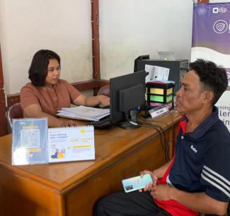 Petugas Kantor Pelayanan, Penyuluhan, dan Konsultasi Perpajakan (KP2KP) Putussibau memberikan pelayanan konsultasi ke Bendahara Desa Belatung yang datang ke Tempat Pelayanan Terpadu (TP) KP2KP Putussibau, Kabupaten Putussibau (Jumat, 17/3).