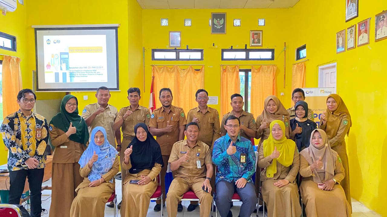 Kantor Pelayanan, Penyuluhan, dan Konsultasi Perpajakan (KP2KP) Ranai kembali menyelenggarakan sosialisasi Peraturan Menteri Keuangan Nomor 59/PMK.03/2022 (PMK 59) di Kecamatan Bunguran Selatan, Natuna, Kepulauan Riau (Selasa, 13/9). Acara dihadiri oleh para bendahara kecamatan, desa, sekolah, dan puskesmas di wilayah Kecamatan Bunguran Selatan.