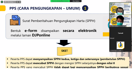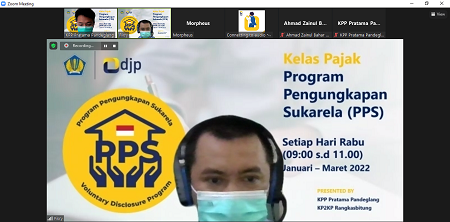 Kantor Pelayanan, Penyuluhan, dan Konsultasi Perpajakan (KP2KP) Rangkasbitung bekerja sama dengan Kantor Pelayanan Pajak (KPP) Pratama Pandeglang mengadakan edukasi kegiatan Program Pengungkapan Sukarela secara daring melaui aplikasi Zoom Meeting dari Kabupaten Pandeglang (Rabu, 09/02).