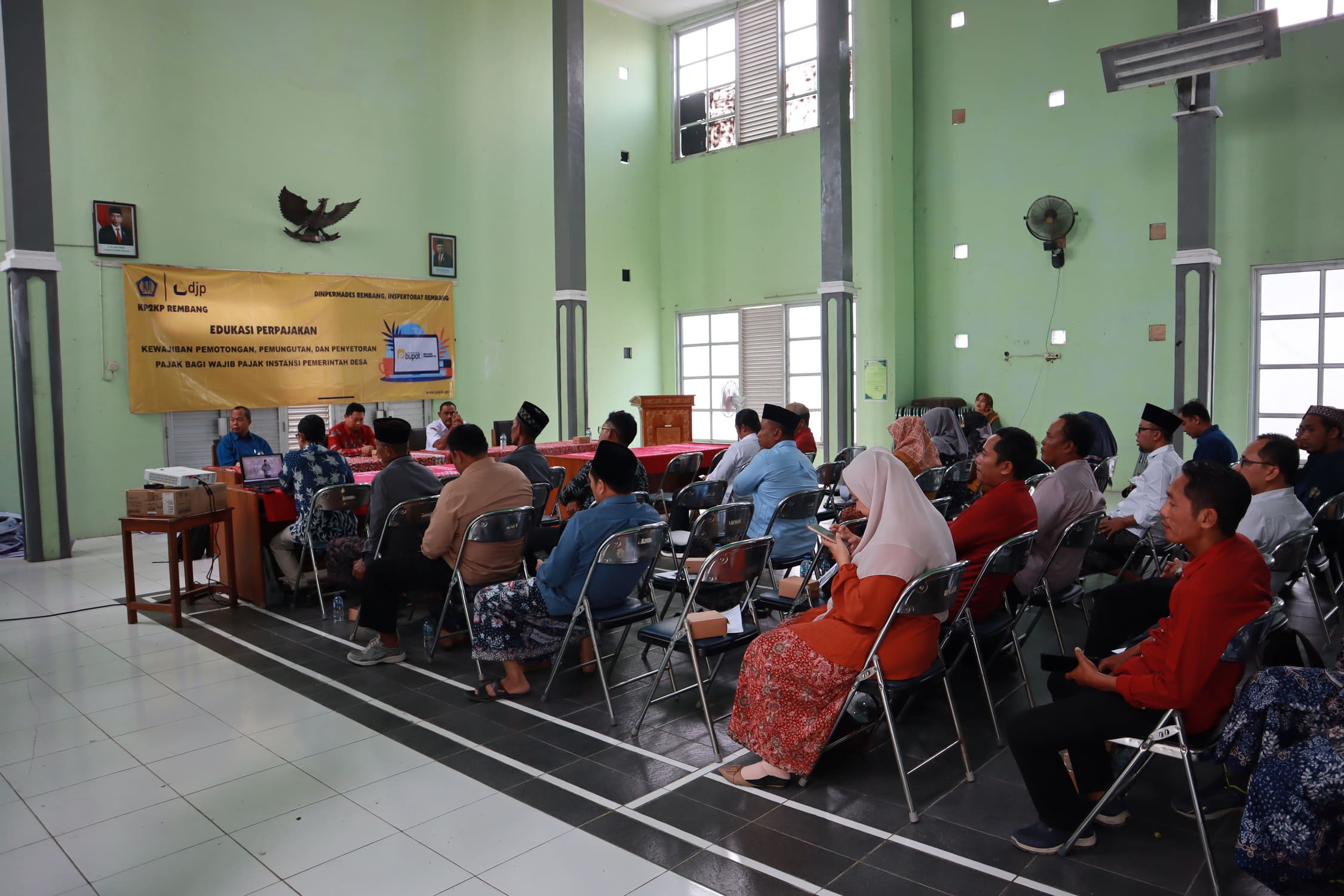 Kantor Pelayanan, Penyuluhan dan Konsultasi (KP2KP) Rembang bekerja sama dengan Kantor Pelayanan Pajak (KPP) Pratama Pati dan Dinas Pemberdayaan Masyarakat dan Desa (DINPERMADES) Kabupaten Rembang menyelenggarakan Sosialisasi Perpajakan terkait kewajiban perpajakan Instansi Pemerintah kepada Wajib Pajak Instansi Pemerintah Desa pada Selasa dan Kamis, 6 dan 8 Agustus 2024 bertempat di Aula DINPERMADES Rembang.