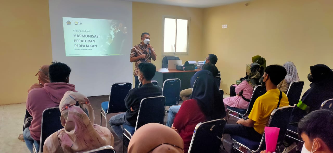 Kantor Pelayanan, Penyuluhan, dan Konsultasi Perpajakan (KP2KP) Rumbia kembali melakukan sosialisasi mengenai Undang-Undang Harmonisasi Peraturan Perpajakan (UU HPP) di ruang aula KP2KP Rumbia, Kabupaten Bombana (Jumat, 22/04).