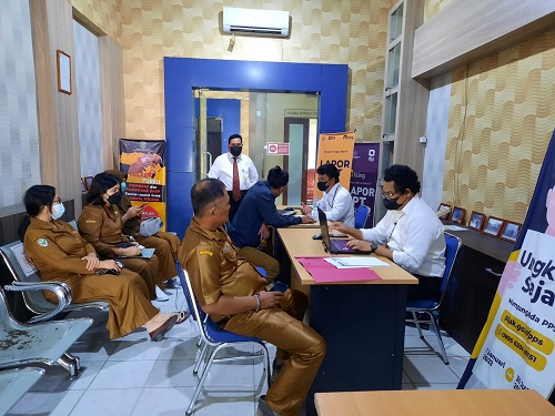 Layanan di Luar Kantor ini bersinergi dengan pihak Badan Keuangan Daerah Kabupaten Sambas. Layanan di Luar Kantor berlansung selama 3 hari berturut-turut, dari hari Senin tanggal 21 Maret sampai dengan hari Rabu tanggal 23 Maret 2022.