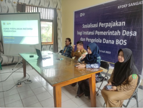 Kantor Pelayanan, Penyuluhan, dan Konsultasi Perpajakan (KP2KP) Sangatta berkolaborasi dengan Asisten Penyuluh Pajak dari Kantor Pelayanan Pajak (KPP) Pratama Bontang menyelenggarakan Sosialisasi Kewajiban Perpajakan Bendahara Desa di wilayah Kec. Muara Wahau bertempat di Aula Kantor Kecamatan Muara Wahau, Kabupaten Kutai Timur (Selasa, 4/7). Sosialisasi ini mengundang dan dihadiri oleh kepala desa beserta pejabat keuangan dari 10 desa di Kecamatan Wahau.