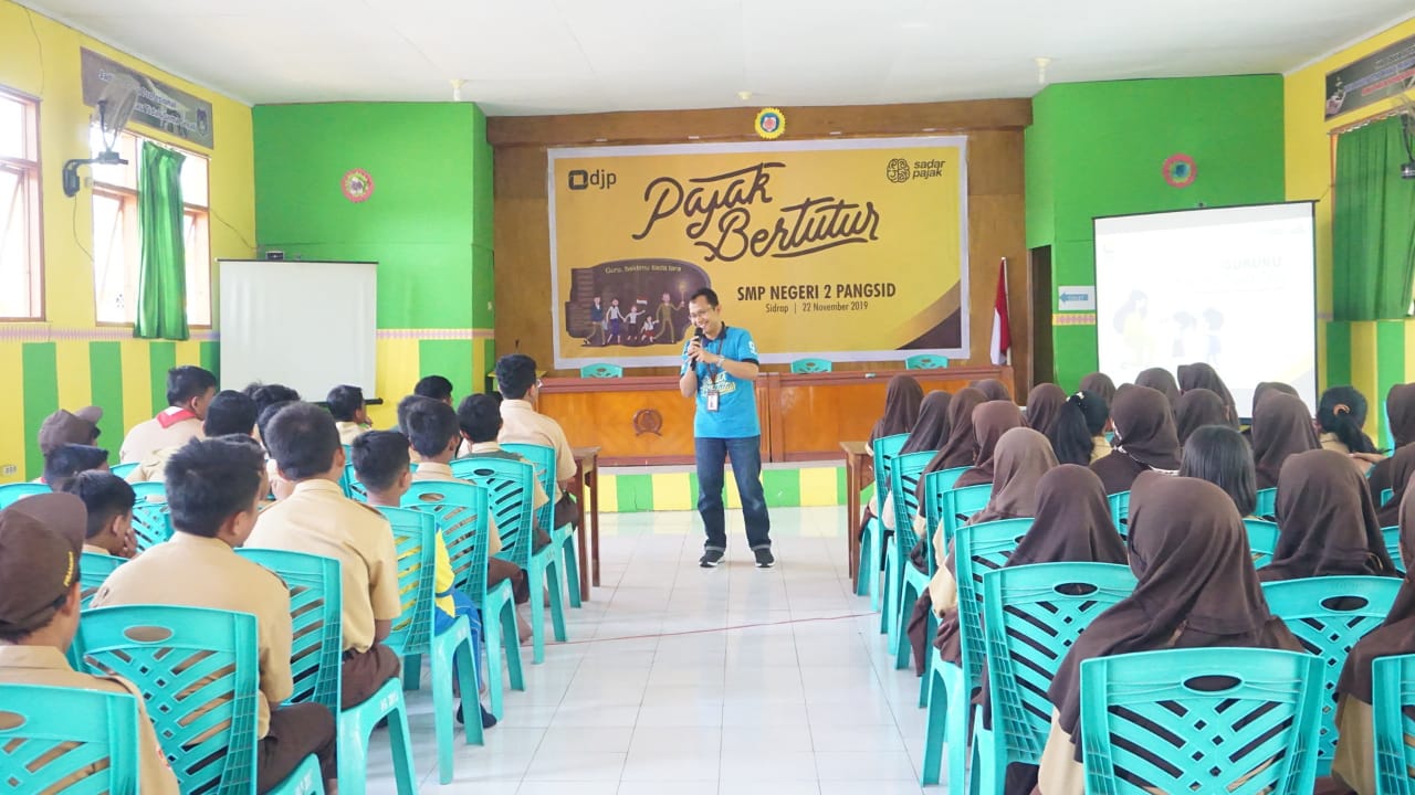 Kantor Pelayanan, Penyuluhan, dan Kosultasi Perpajakan (KP2KP) Sidrap turut menyemarakkan program Inklusi Pajak dengan menggelar kegiatan Pajak Bertutur yang dilaksanakan di SMP Negeri 2 Pangsid (Jumat, 22/11). Para siswa pun tampak antusias mengikuti rangkaian acara yang bertemakan “Guru, Baktimu Tiada Tara” tersebut.