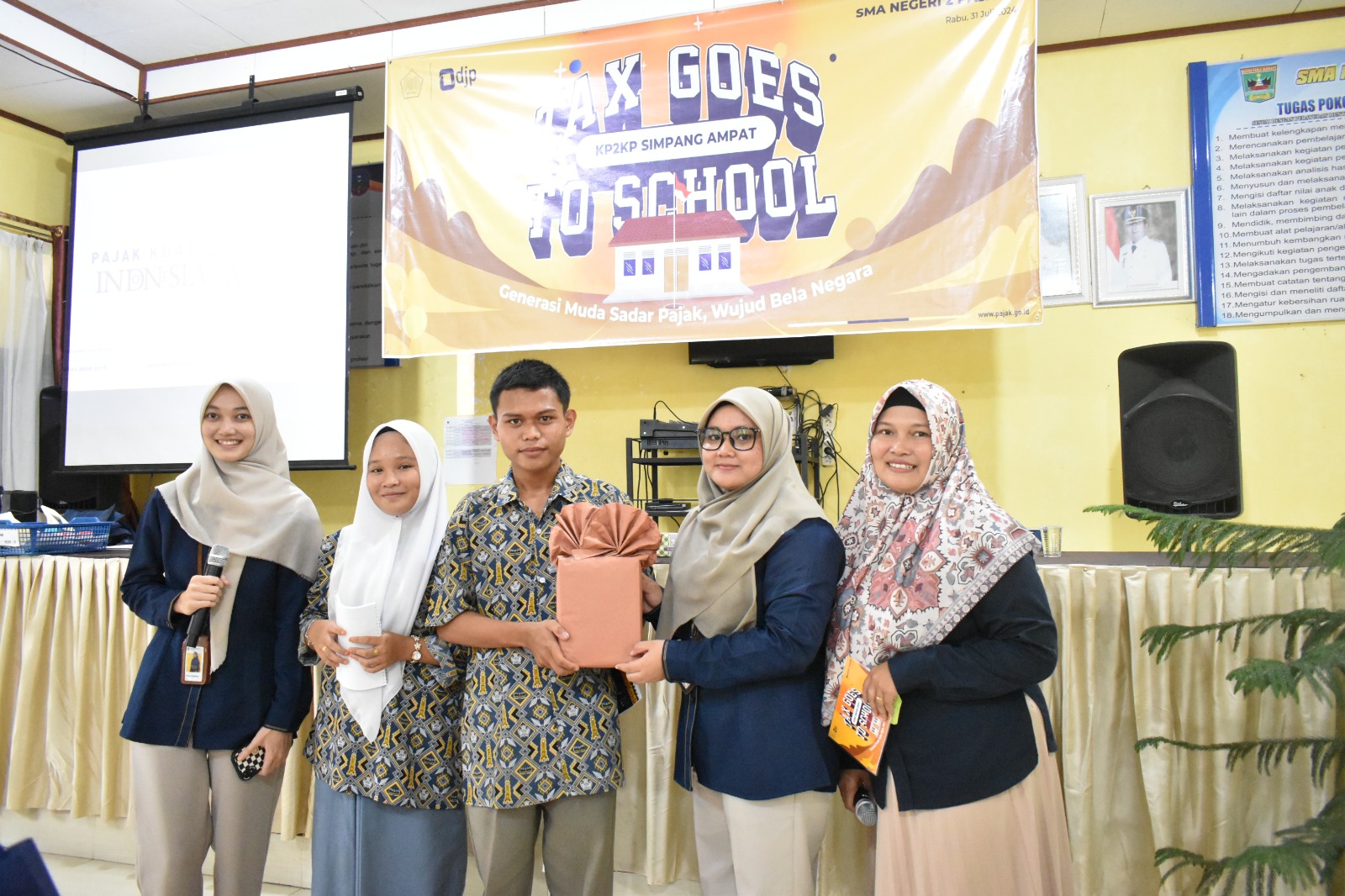 Kantor Penyuluhan, Pelayanan, dan Konsultasi Perpajakan (KP2KP) Simpang Ampat mengadakan kegiatan Tax Goes To School (TGTS) di SMA Negeri 2 Pasaman, Pasaman Barat, Sumatera Barat (Rabu, 31/7). Kegiatan ini mengusung tema "Sadar Pajak Bukti Peduli Pada Negeri."
