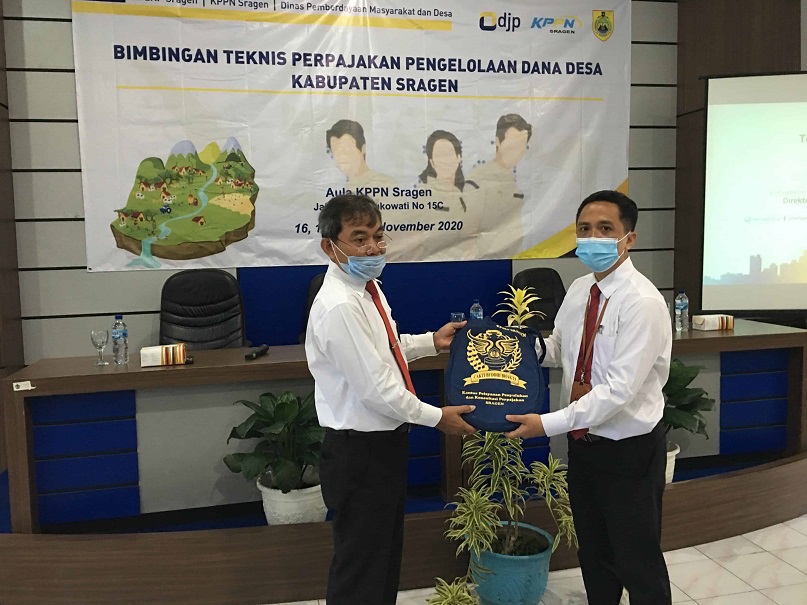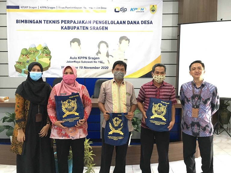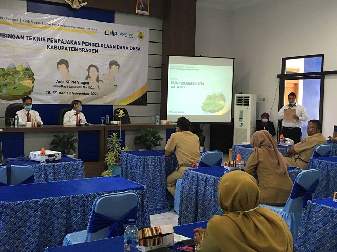 Kantor Pelayanan Penyuluhan dan Konsultasi Perpajakan (KP2KP) Sragen bekerja sama dengan Kantor Pelayanan Perbendaharaan Negara (KPPN) Sragen dan Dinas Pemberdayaan Masyarakat dan Desa (PMD) Sragen mengadakan Bimbingan Teknis Perpajakan Pengelolaan Dana Desa di Aula KPPN Sragen (Rabu, 11). Acara dilaksanakan selama tiga hari sejak Senin (17/11).