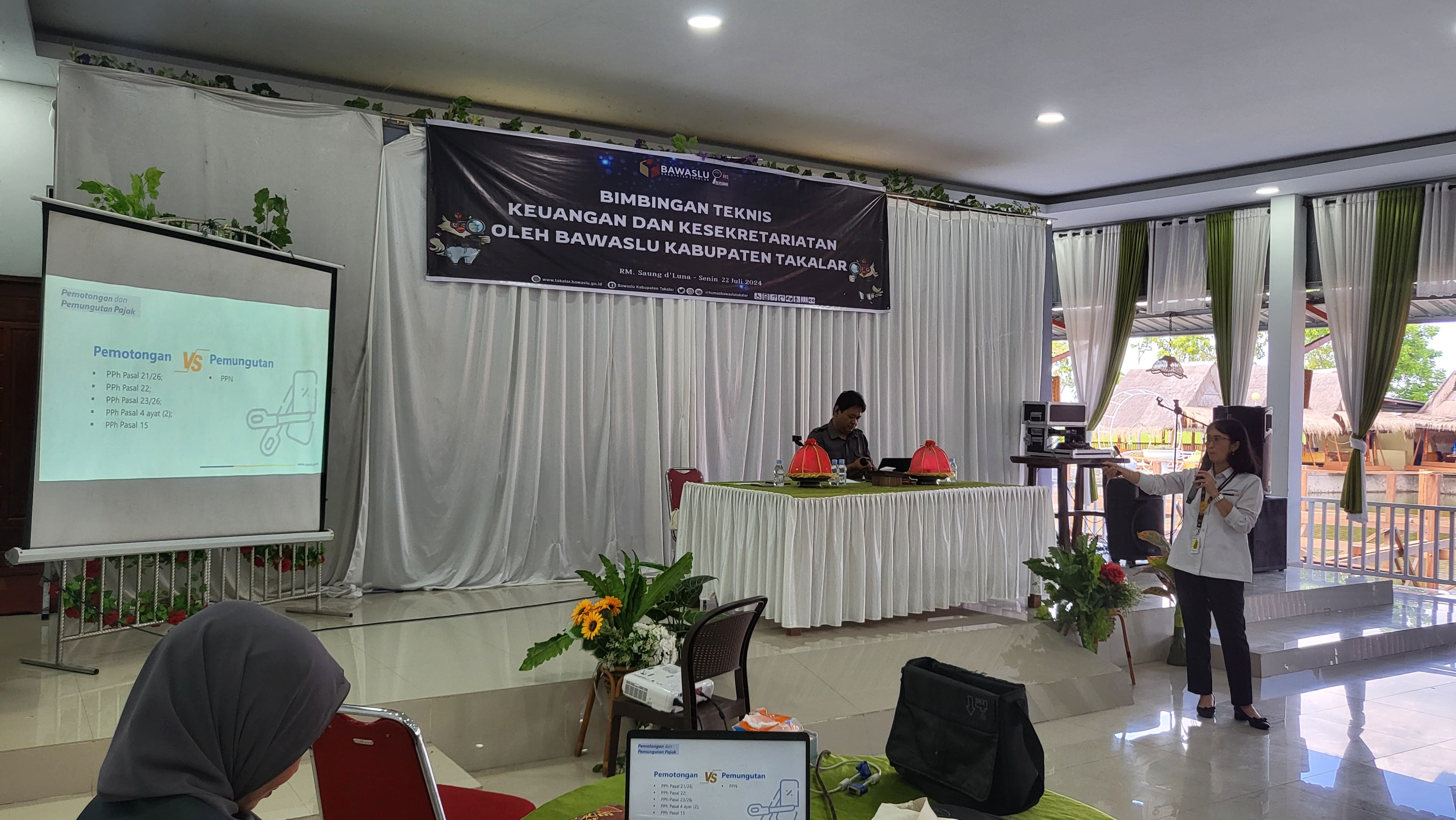 Kantor Pelayanan, Penyuluhan, dan Konsultasi Perpajakan (KP2KP) Takalar hadir sebagai narasumber dalam kegiatan Bimbingan Teknis (Bimtek) Keuangan dan Kesekretariatan yang diselenggarakan oleh Badan Pengawas Pemilihan Umum (Bawaslu) Kabupaten Takalar di Rumah Makan D’Luna Kabupaten Takalar pada pukul 10.00 WITA (Senin, 22/7).