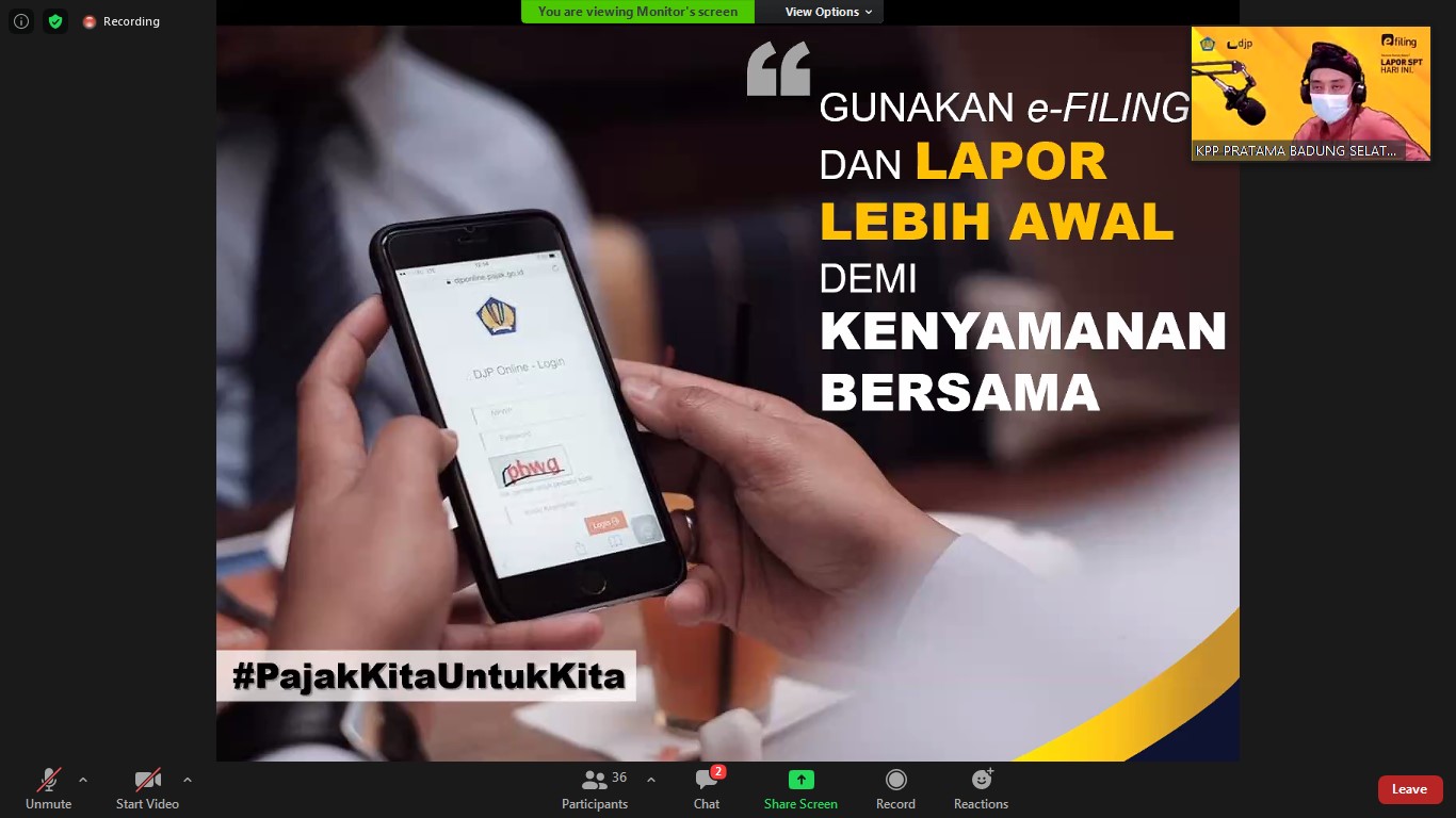 "Saya mohon kepada Bapak/Ibu tidak segan bertanya kepada Narasumber dan kami harapkan Bapak/Ibu dapat menjadi pelopor di dalam penyampaian SPT Tahunan baik orang pribadi maupun wajib pajak lainnya,” tambahnya.