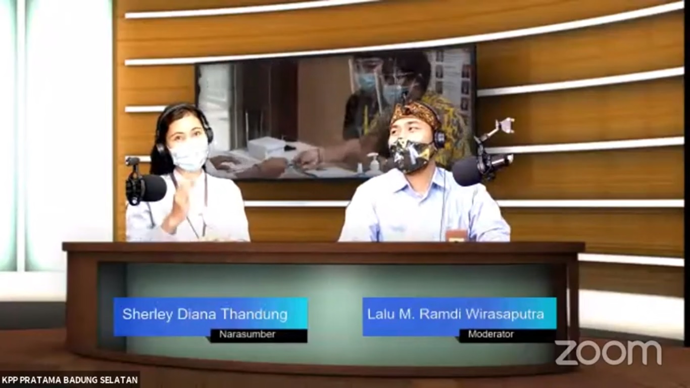 Pada kegiatan kali ini, Fungsional Penyuluh Pajak Lalu M. Ramdi Wirasaputra bertindak sebagai moderator dan Sherley Diana Thandung bertindak sebagai narasumber.