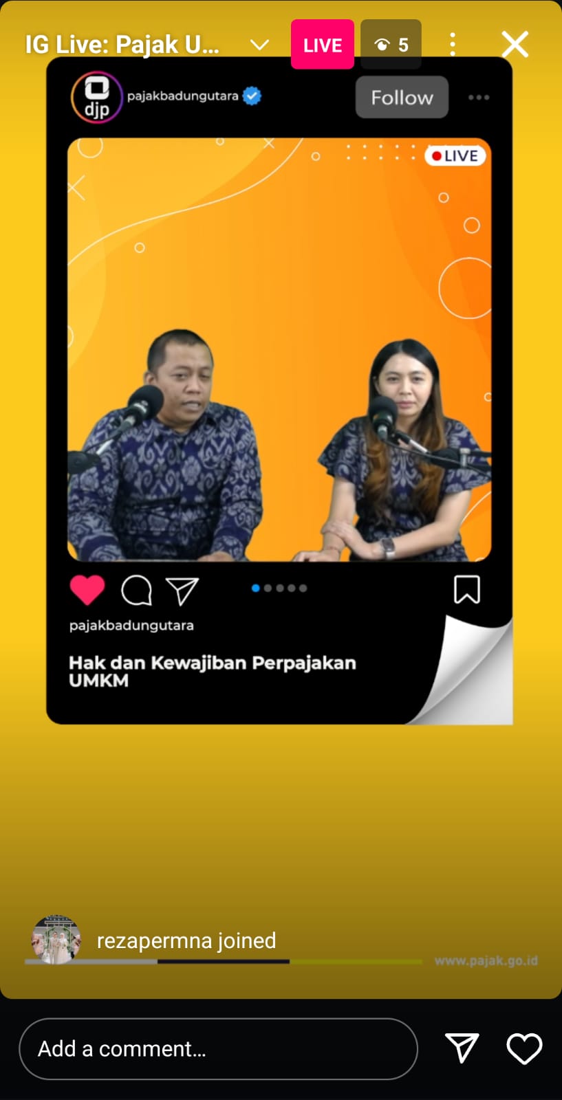 Kantor Pelayanan Pajak (KPP) Pratama Badung Utara menyelenggarakan siaran langsung Instagram bertema “Hak dan Kewajiban Perpajakan Usaha Mikro, Kecil, dan Menengah (UMKM)” melalui akun @pajakbadungutara dari Ruang Podcast KPP Pratama Badung Utara, Kab. Badung (Kamis, 17/4).