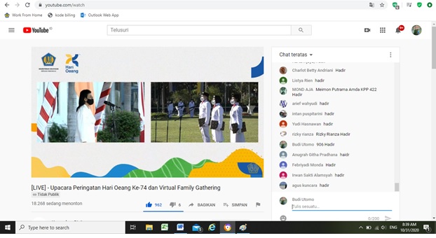 Kantor Pelayanan Pajak (KPP) Pratama Badung Utara mengikuti upacara peringatan Hari Oeang Republik Indonesia (HORI) ke-74 secara daring melalui live streaming Youtube Kemenkeuri di Denpasar, Bali (Sabtu, 31/10).