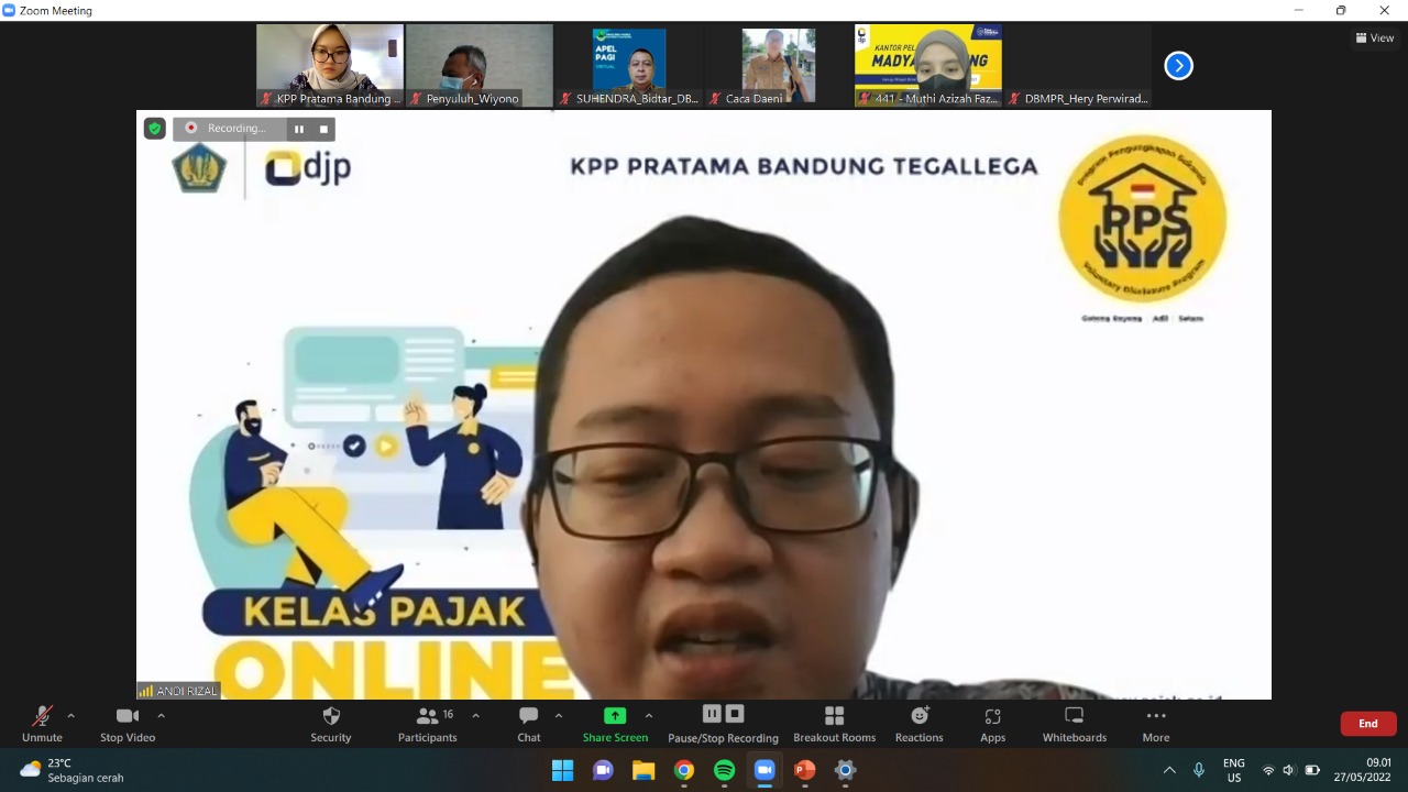 Kegiatan yang secara daring melalui aplikasi zoom meeting ini diikuti 25 wajib pajak dari berbagai instansi pemerintah dan dipandu oleh Tim Penyuluh Pajak KPP Pratama Bandung Tegallega yaitu Andi Rizal, Wiyono serta Dita Vega Amelia