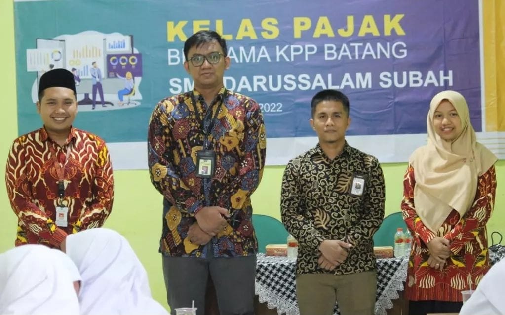 Kantor Pelayanan Pajak (KPP) Pratama Batang bersama Sekolah Menengah Kejuruan (SMK) Darussalam Subah mengadakan kelas pajak di Ruang Kelas Sekolah Menengah Kejuruan (SMK) Darussalam Subah, Batang (Selasa, 20/9).