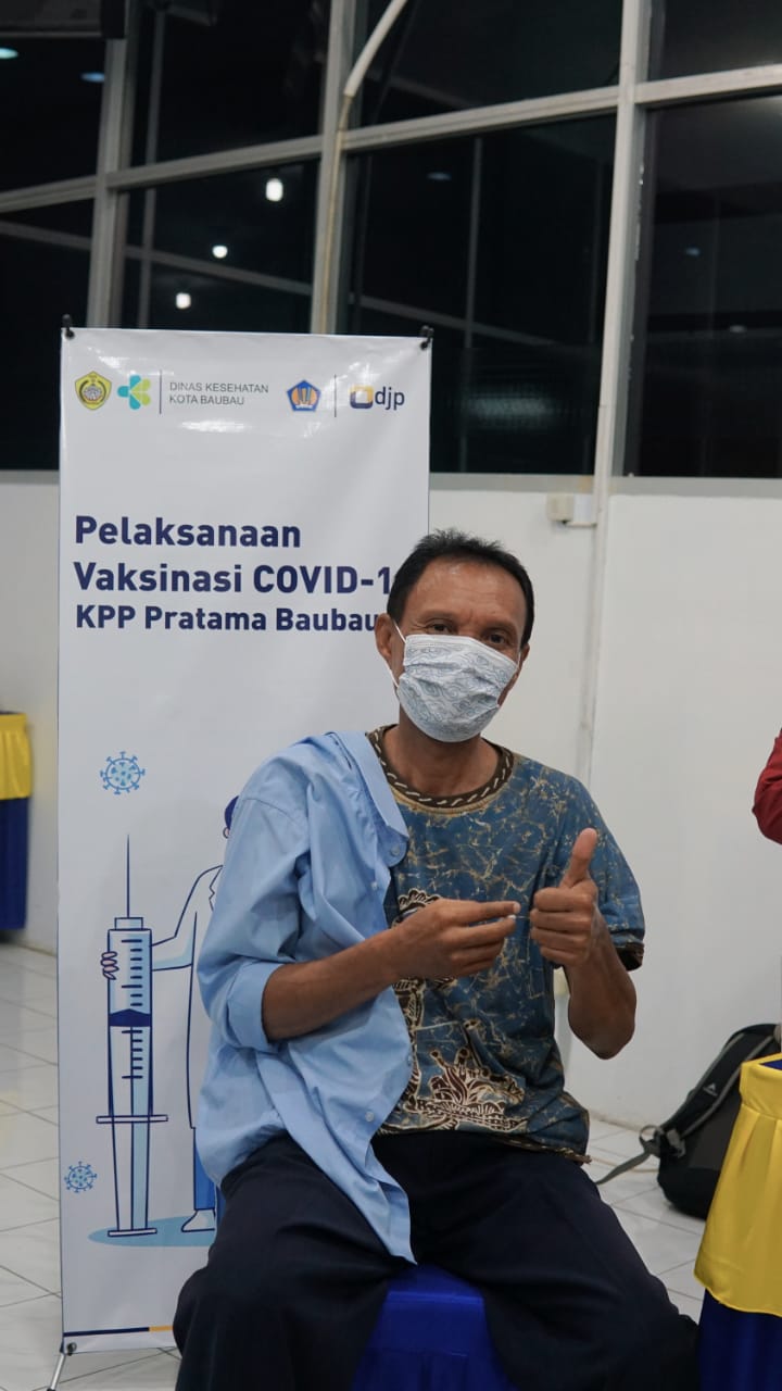 Kantor Pelayanan Pajak (KPP) Pratama Baubau melaksanakan vaksinasi Covid-19 tahap pertama di Aula KPP Pratama Baubau (Rabu, 31/3). Pelaksanaan vaksinasi ini adalah bentuk kerja sama dengan tenaga medis Puskesmas Wajo.