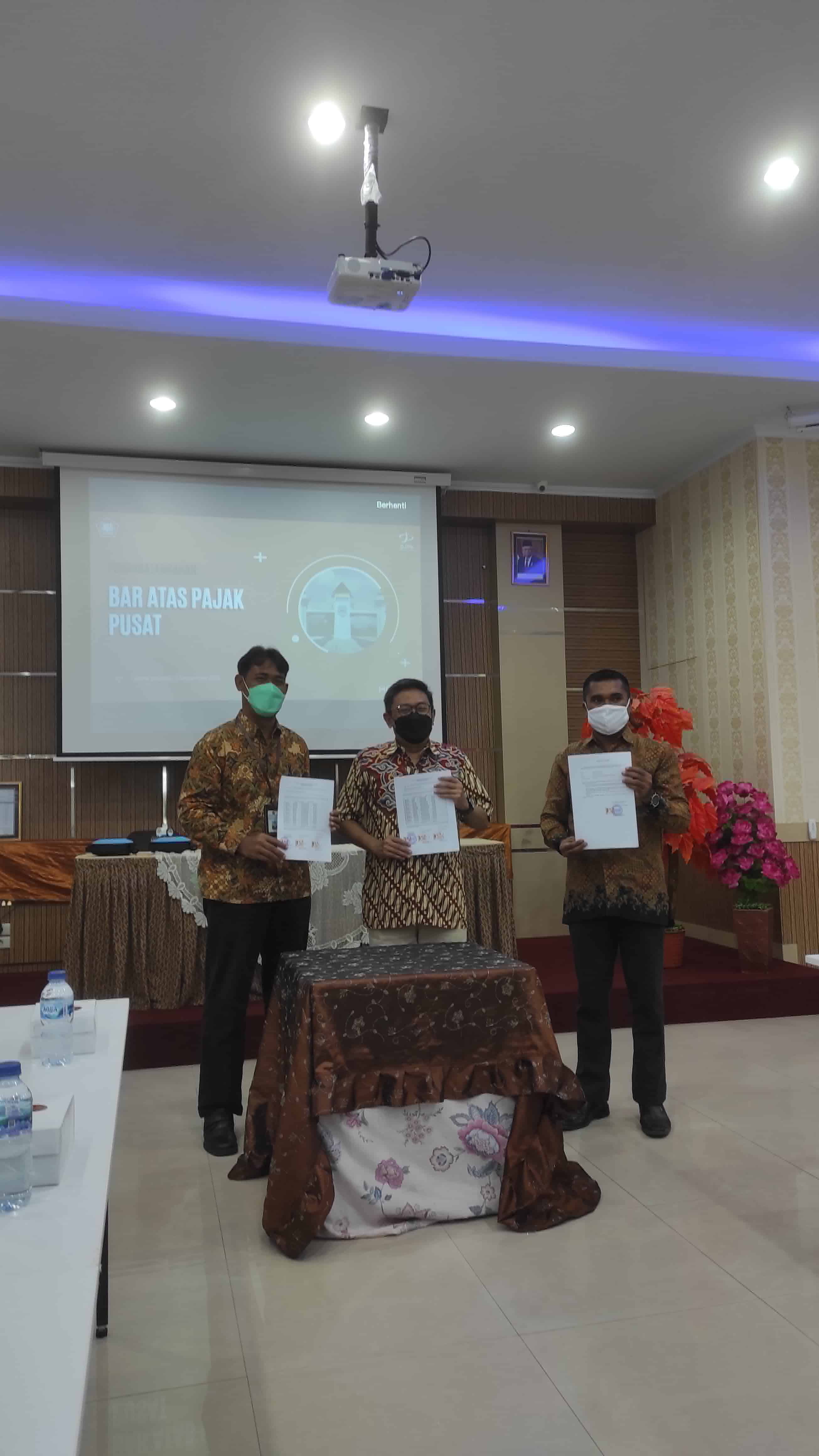 Kantor Pelayanan Pajak (KPP) Pratama Baubau bersama Badan Pengelola Keuangan dan Aset Daerah (BPKAD) Pemerintah Kabupaten Buton Tengah dan Kantor Pelayanan Perbendaharaan Negara (KPPN) Baubau menyelenggarakan kegiatan Pembahasan Rekonsiliasi serta Penandatanganan Berita Acara Penyetoran Pajak Pusat Semester I dan Semester II Tahun Anggaran 2020 Kabupaten Buton Tengah (Jumat, 3/9). Kegiatan ini dilangsungkan secara tatap di ruang aula KPPN Baubau, Jalan Palagimata, Kota Baubau.