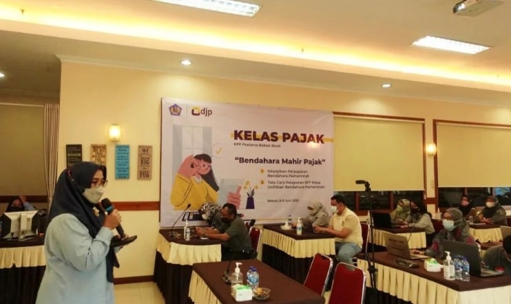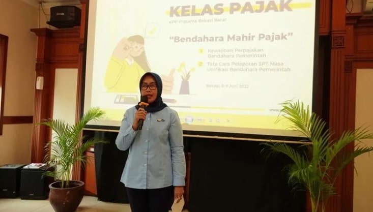 Kantor Pelayanan Pajak (KPP) Pratama Bekasi Barat mengadakan kelas pajak dengan tema Kewajiban Perpajakan Bendahara Pemerintah dan Tata Cara Pelaporan Surat Pemberitahuan (SPT) Masa Unifikasi Bendahara Pemerintah secara tatap muka di Aula Lantai 2 KPP Pratama Bekasi Barat, Kota Bekasi (Rabu, 8/6).